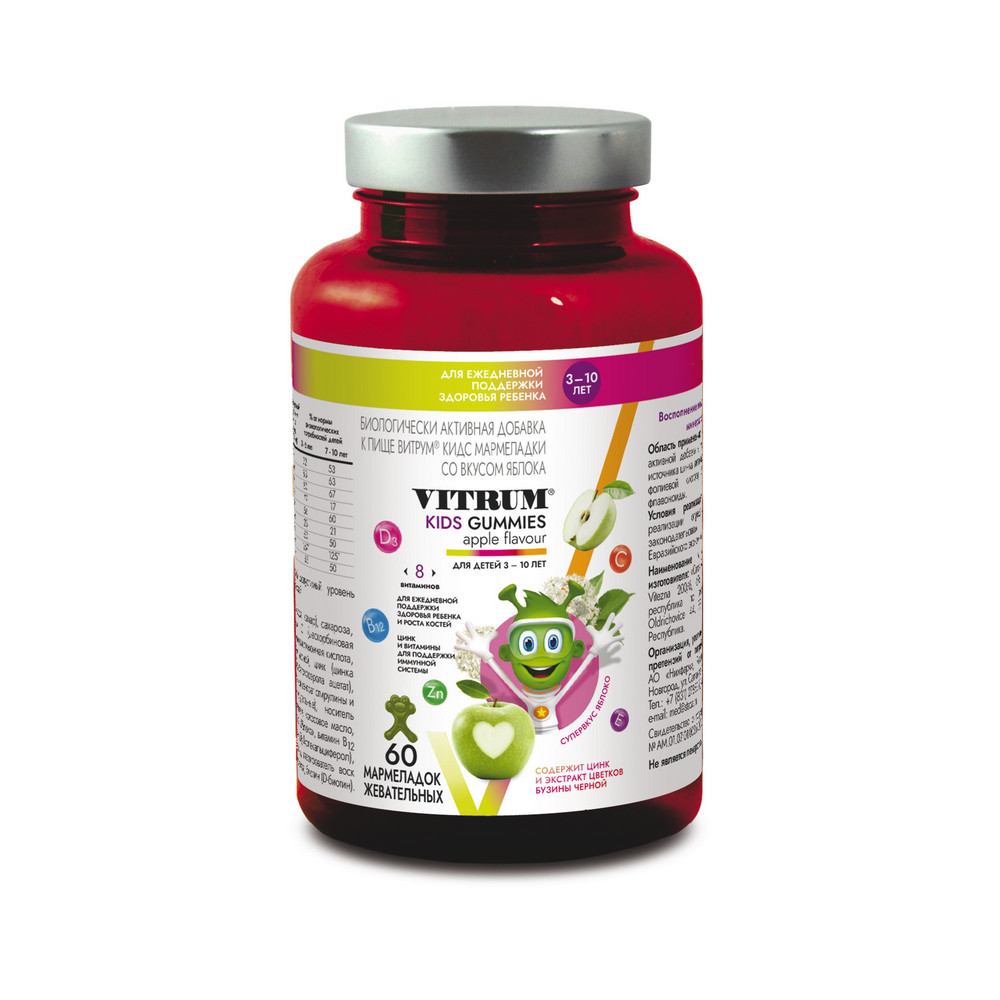 Витрум Кидс витаминно-минеральный комплекс для детей 3-10 лет мармеладки со вкусом яблока 60 шт