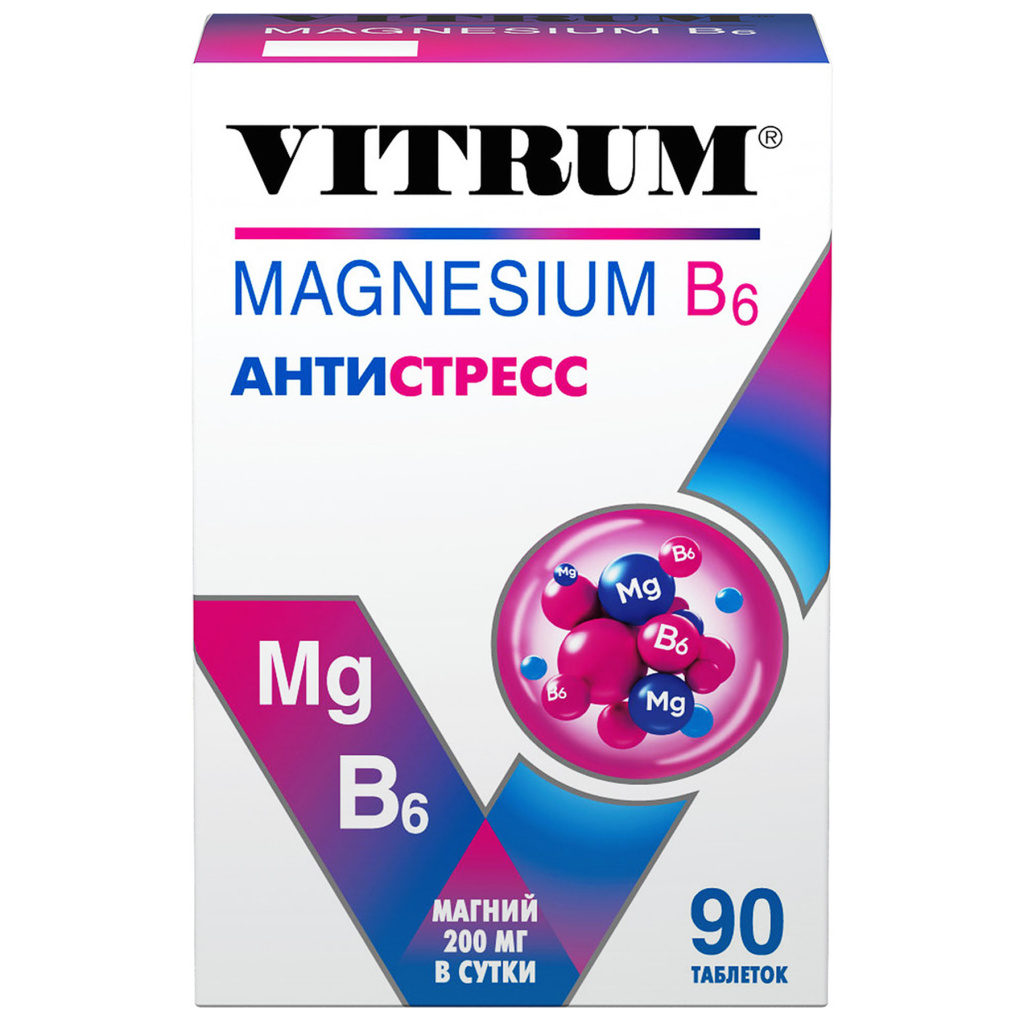 Магний (магния лактат), агент влагоудерживающий сорбитол, антислеживающий агент целлюлоза, антислеживающий агент магниевая соль стеариновой кислоты, антислеживающий агент стеариновая кислота, оболочка таблетки (стабилизатор гидроксипропилметилцеллюлоза, стабилизатор гидрокспропилцеллюлоза, антислеживающий агент целлюлоза, антислеживающий агент тальк, триглицериды среднецепочечные), антислеживающий агент диоксид кремния, витамин В6 (пиридоксина гидрохлорид).