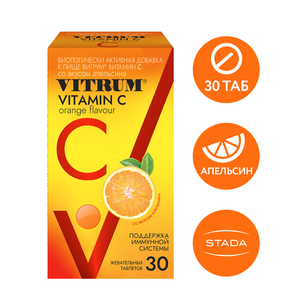 Витамин С (L-аскорбат натрия, L-аскорбиновая кислота), подсластитель сорбитол, оболочка таблетки (NutraPolish® F белый 014.65 MS (стабилизатор гидроксипропилметилцеллюлоза, антислеживающий агент тальк, краситель титана диоксид, антислеживающий агент целлюлоза, стабилизатор гидроксипропилцеллюлоза, триглицериды среднецепочечные), краситель экстракт паприки, регулятор кислотности яблочная кислота, ароматизатор «апельсин», подсластитель ацесульфам К), антислеживающий агент стеариновая кислота, ароматизатор «апельсин», антислеживающий агент магния стеарат, подсластители: аспартам, ацесульфам К, неогесперидин, сахарин натрия.
