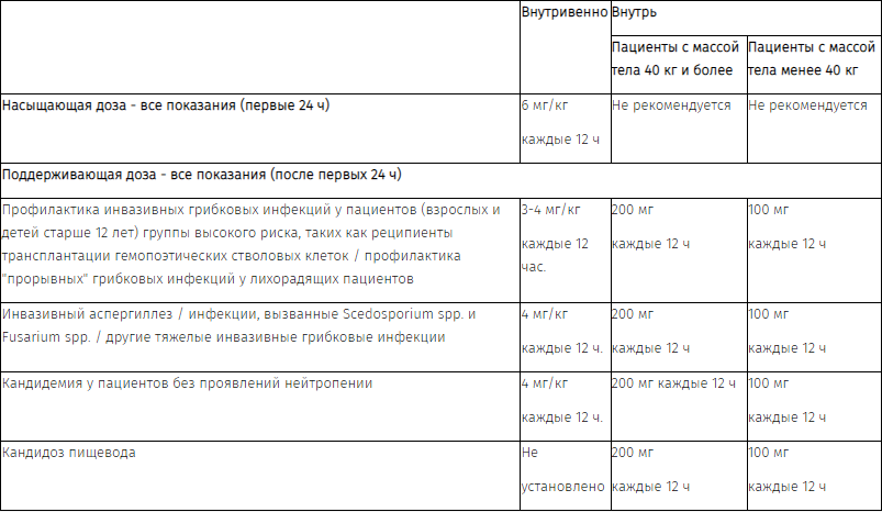 Профилактика инвазивных грибковых инфекций у пациентов (взрослых и детей старше 12 лет) группы высокого риска, таких как реципиенты трансплантации гемопоэтических стволовых клеток.