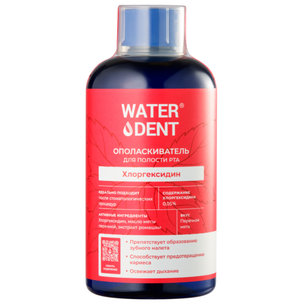 Waterdent 500 мл ополаскиватель для полости рта хлоргексидин мята без фтора
