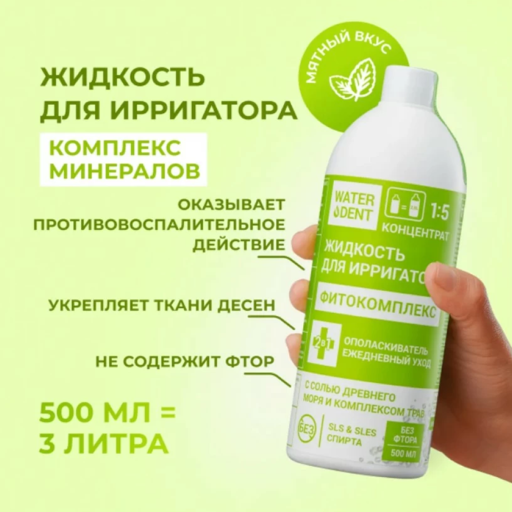 Инструкция по применению Waterdent Жидкость для ирригатора/Ополаскиватель для полости рта Фитокомплекс без фтора 500мл