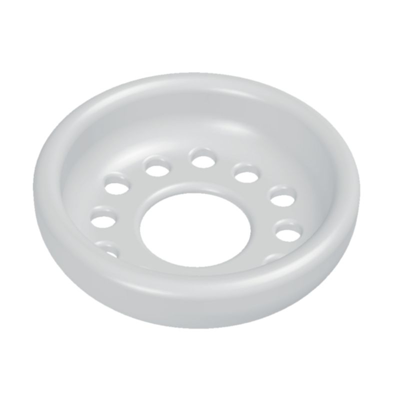 Изделие представляет собой кольцо сферической формы с центральным отверстием и множественными отверстиями меньшего диаметра, расположенными по периферии