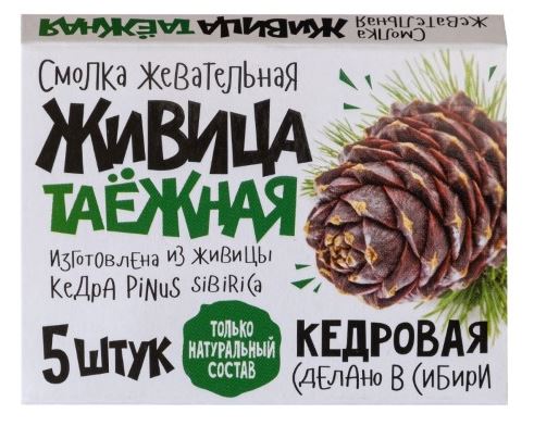 «Живица Таёжная» изготавливается из кедровой живицы (смолы), которую собирают в экологически чистых регионах Сибири. Смола очищается от природных примесей и проходит процесс фильтрации