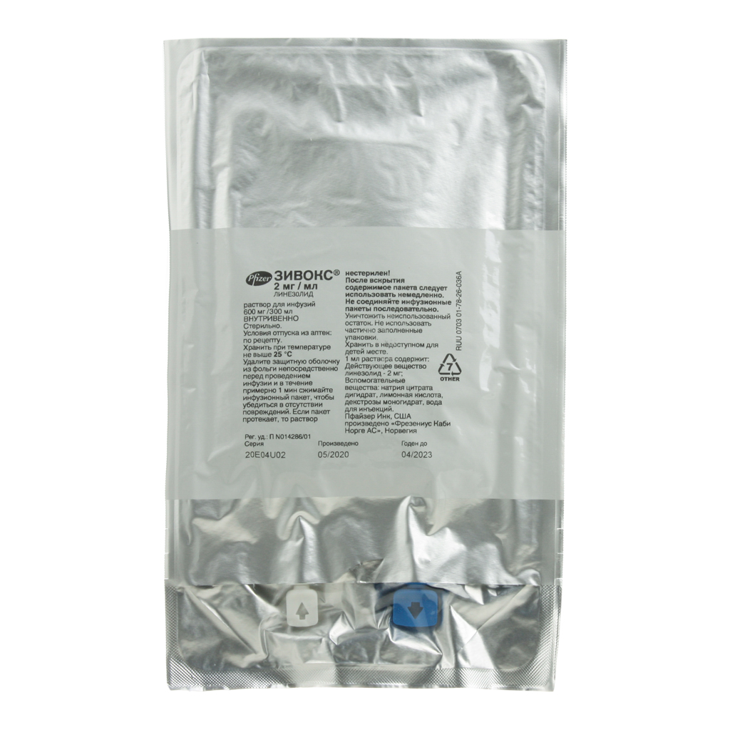 Зивокс® в форме раствора для инфузий совместим со следующими растворами: 5% раствор глюкозы (декстрозы), 0.9% раствор натрия хлорида, раствор Рингера для инъекций с лактозой.