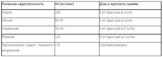 У пожилых пациентов с почечной недостаточностью умеренной степени тяжести и тяжелой почечной недостаточностью рекомендуется корректировка дозы (см. "Пациенты с нарушением функции почек").