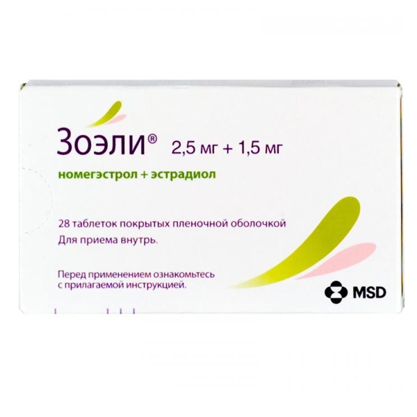 Активные вещества: эстрадиола гемигидрат 1.55 мг, эстрадиола 1.5 мг, номегэстрола ацетат 2.5 мг.