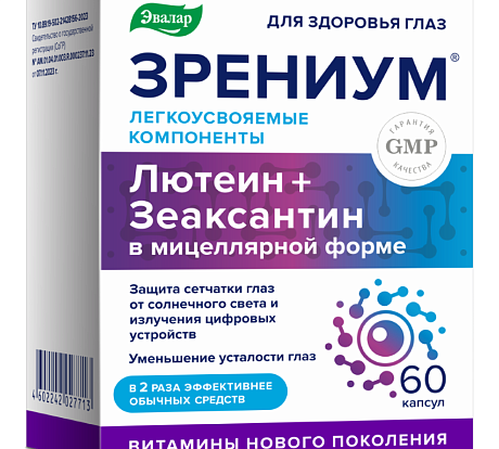 Зрениум – препарат нового поколения на основе эффективных ингредиентов. Это единственный российский препарат*, содержащий лютеин и зеаксантин в легкоусвояемой мицеллярной форме.