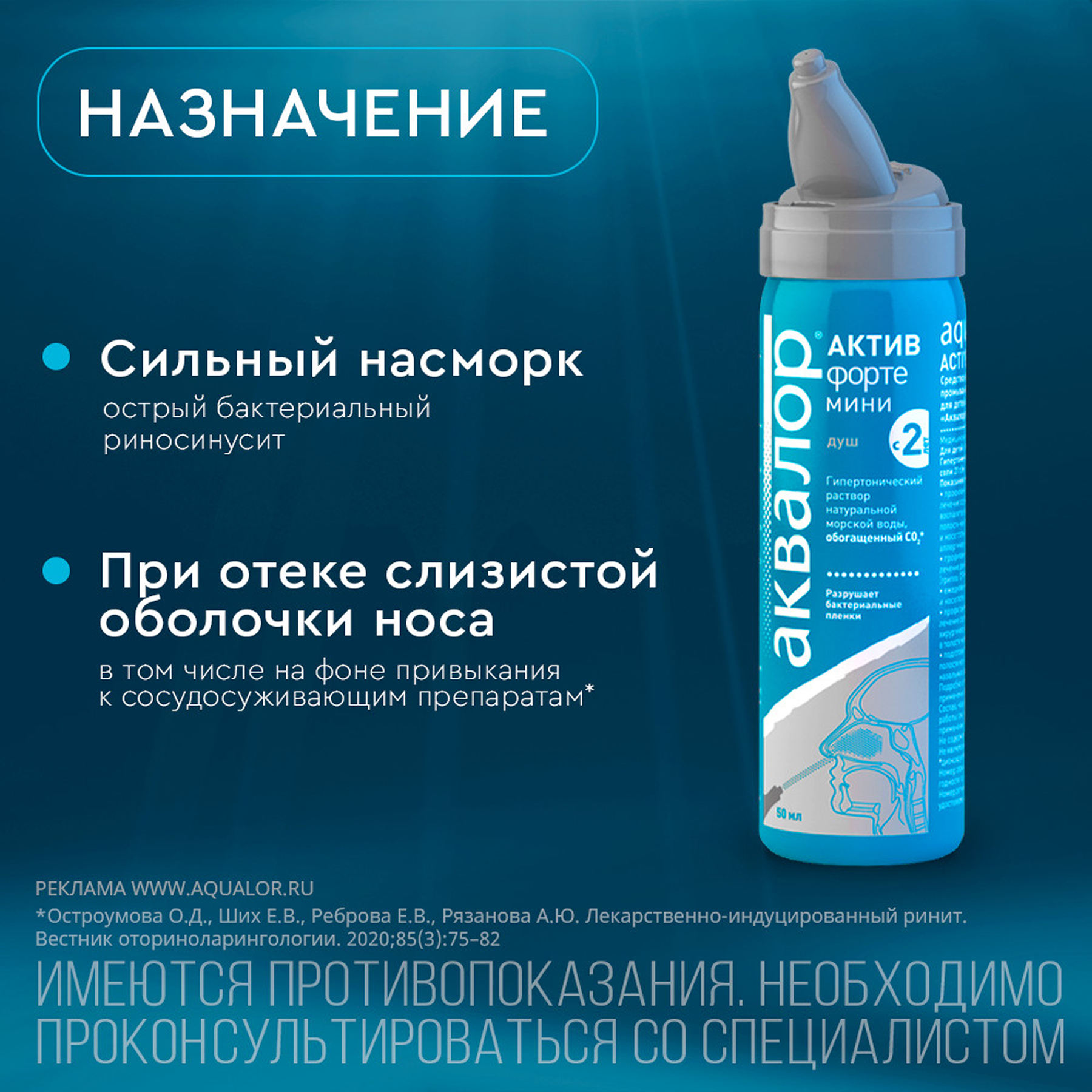 Аквалор Актив Форте Мини 50 мл спрей для промывания носа