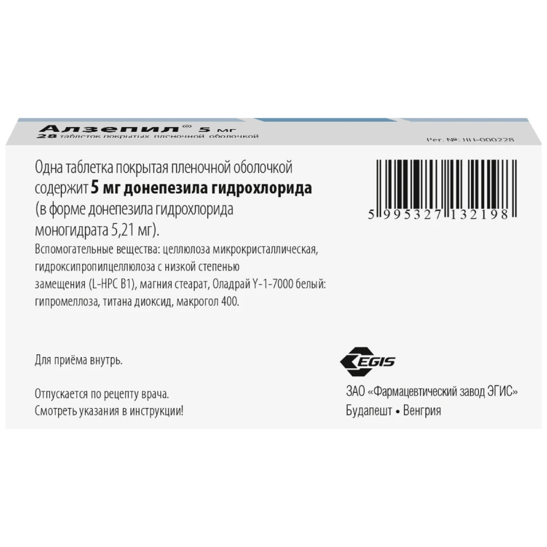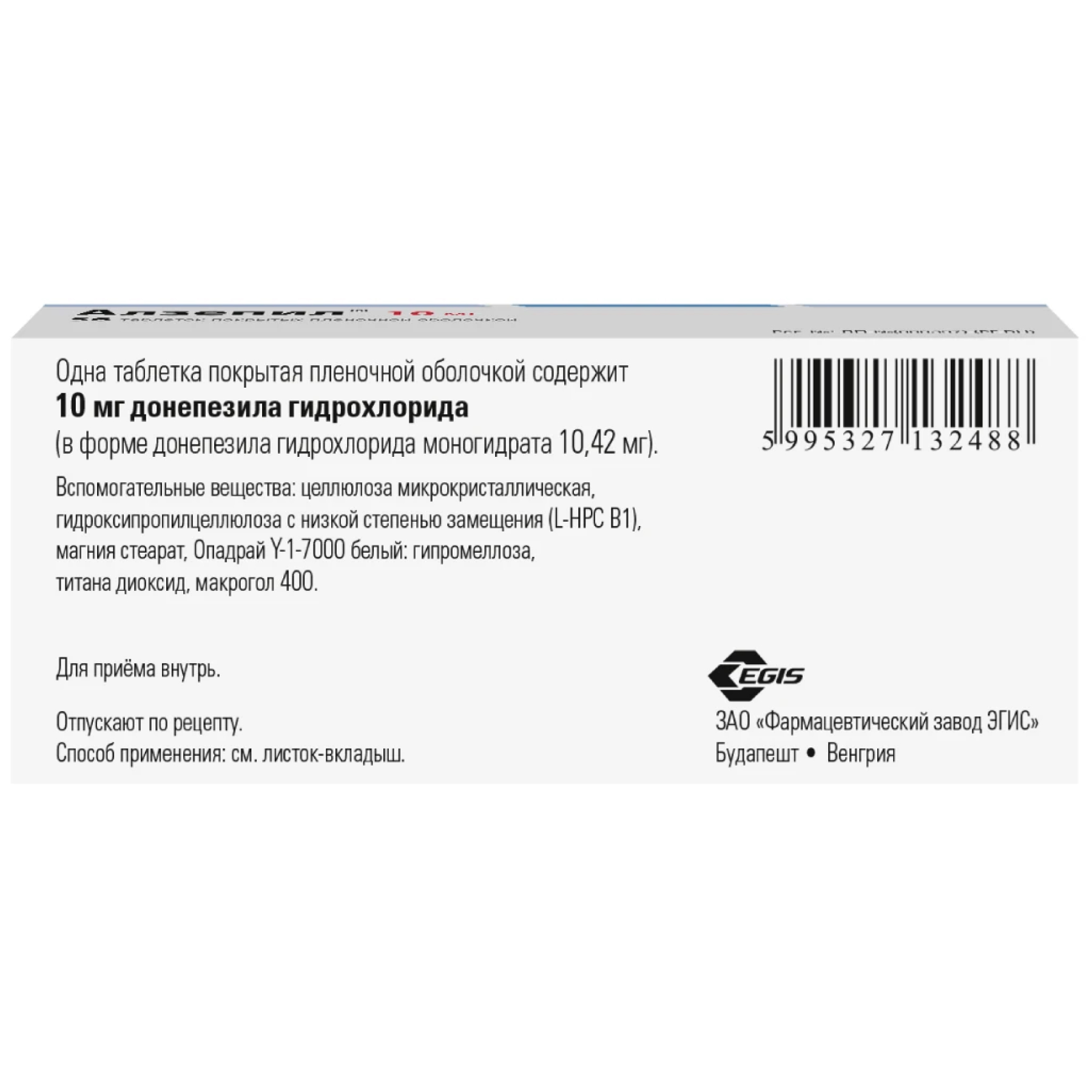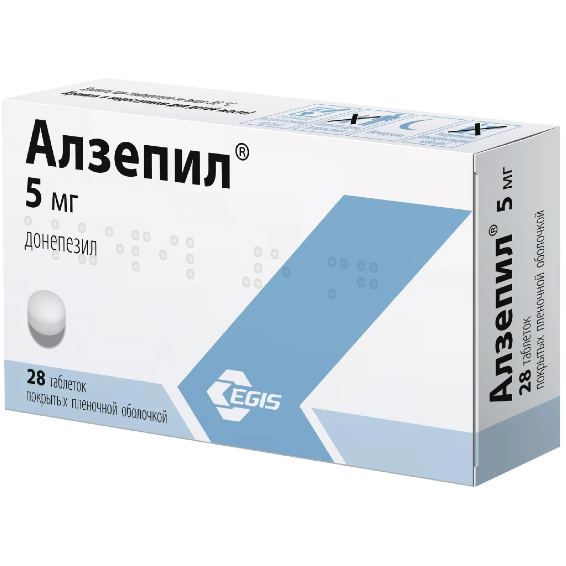 Алзепил выпускается в виде таблеток, покрытых пленочной оболочкой, в двух дозировках: