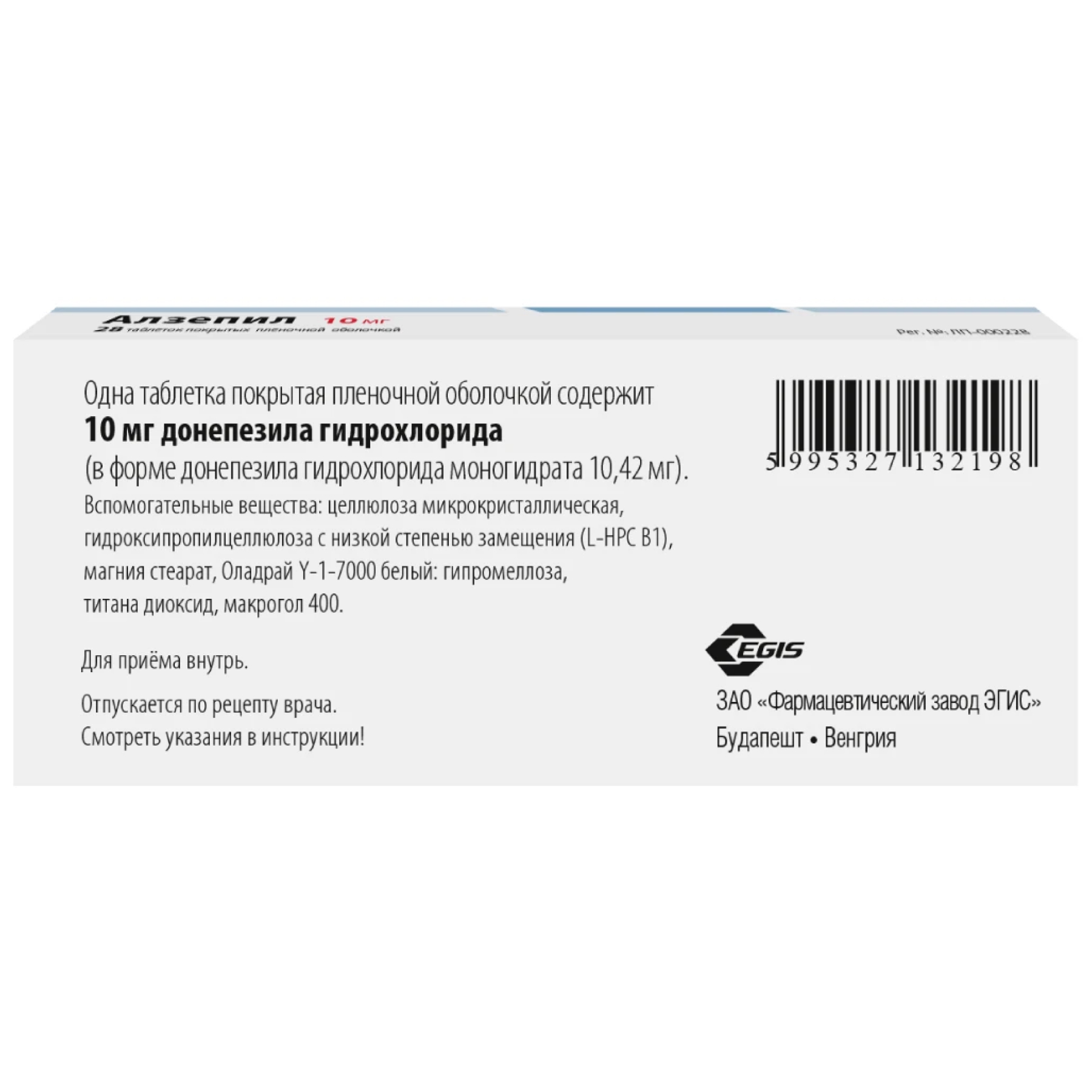 Алзепил 10 мг 56 шт таблетки покрытые пленочной оболочкой