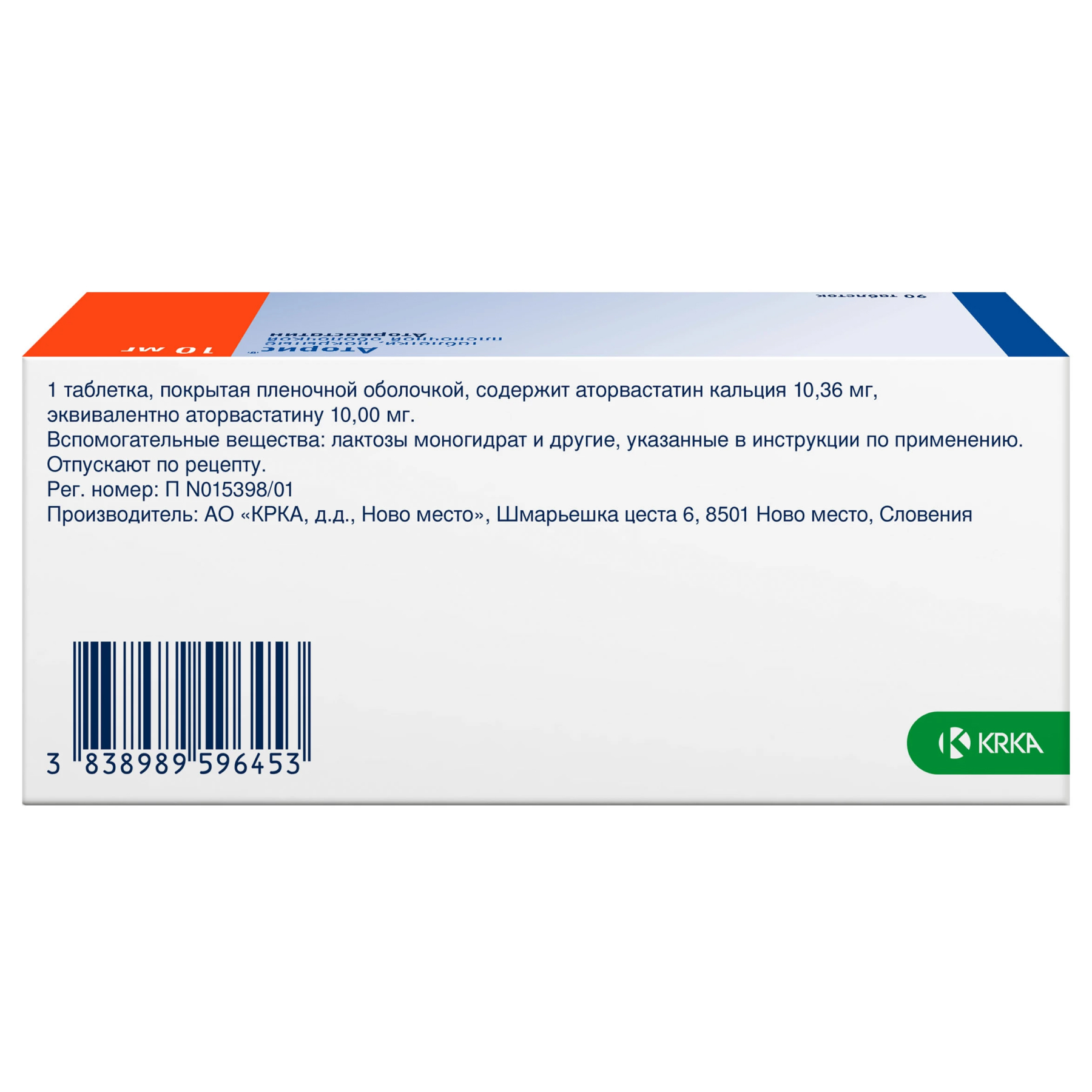 Каждая таблетка Аториса содержит аторвастатин в виде аторвастатина кальция (например, 10,36 мг соли эквивалентны 10 мг активного вещества). Вспомогательные компоненты включают лактозы моногидрат, целлюлозу микрокристаллическую, кроскармеллозу натрия, магния стеарат, титана диоксид (E171), макрогол-3000, тальк и другие. Наличие лактозы требует осторожности у пациентов с непереносимостью сахаров. Содержание натрия в одной таблетке менее 1 ммоль, то есть препарат практически не содержит соли.