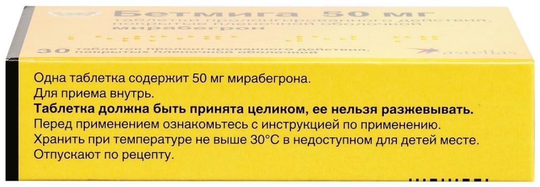 Большинство исследований проводилось с использованием 100 мг Бетмиги. В комбинации с мирабегроном, метопрололом и метформином – 160.