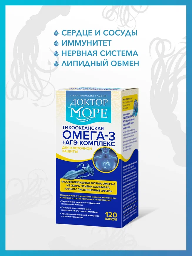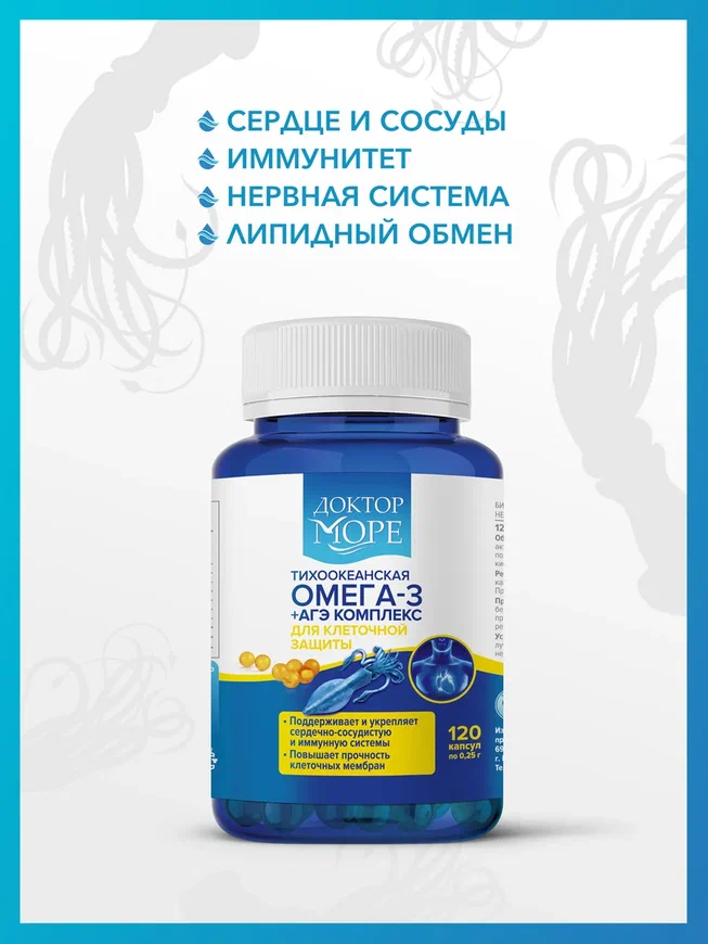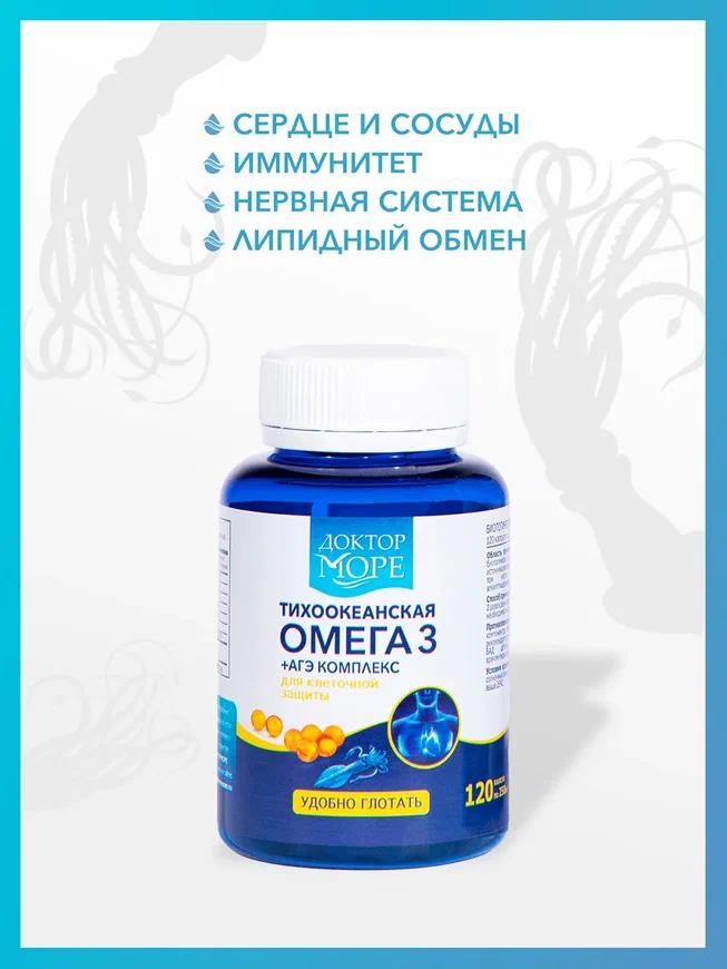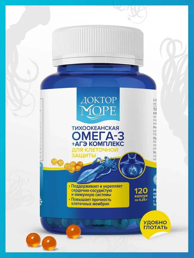 Доктор Море Омега-3 Тихоокеанская + АГЭ комплекс 250 мг 120 шт капсулы