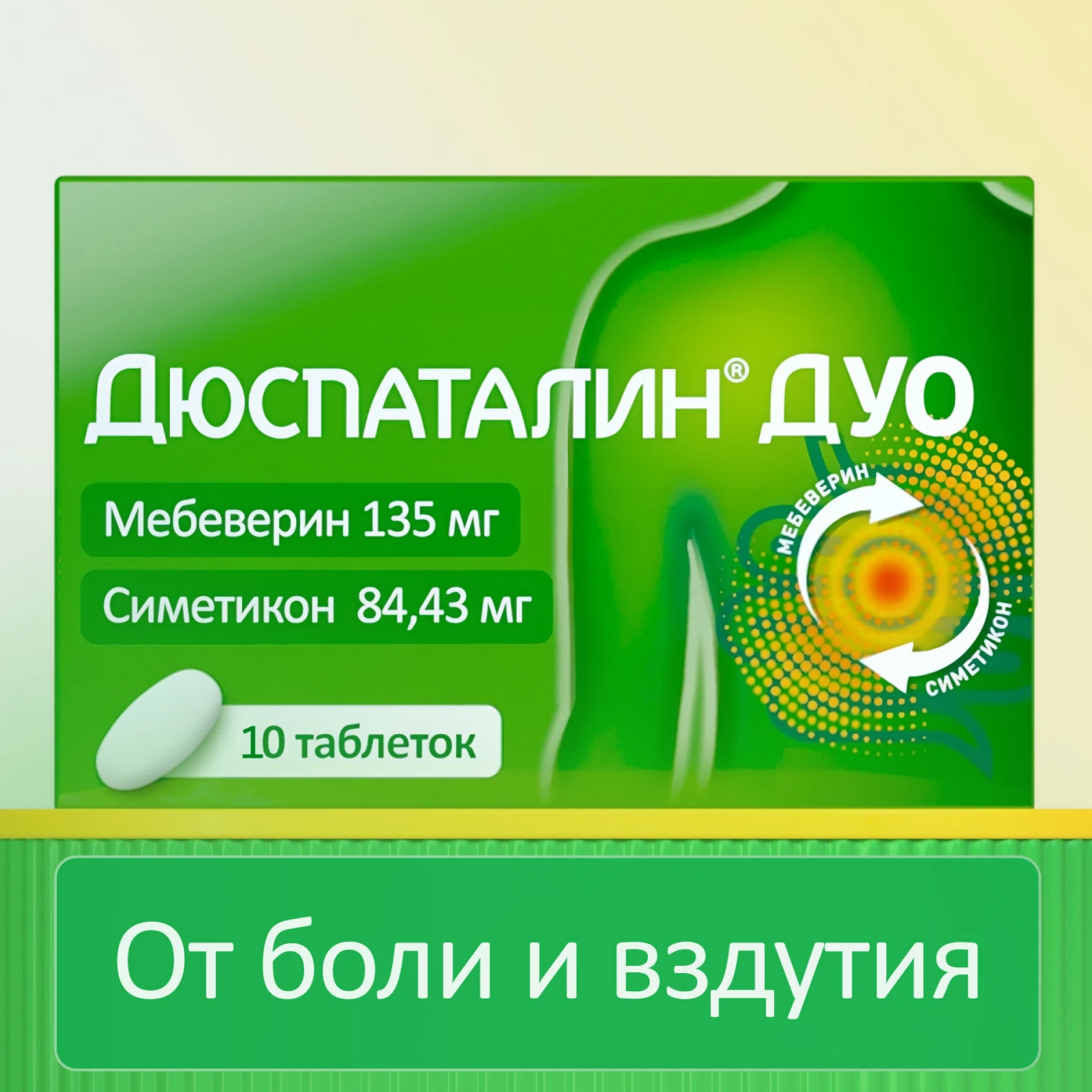 Дюспаталин Дуо 135 мг + 84,43 мг 10 шт таблетки покрытые пленочной оболочкой