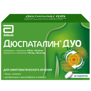 Дюспаталин Дуо 135 мг + 84,43 мг 30 шт таблетки покрытые пленочной оболочкой