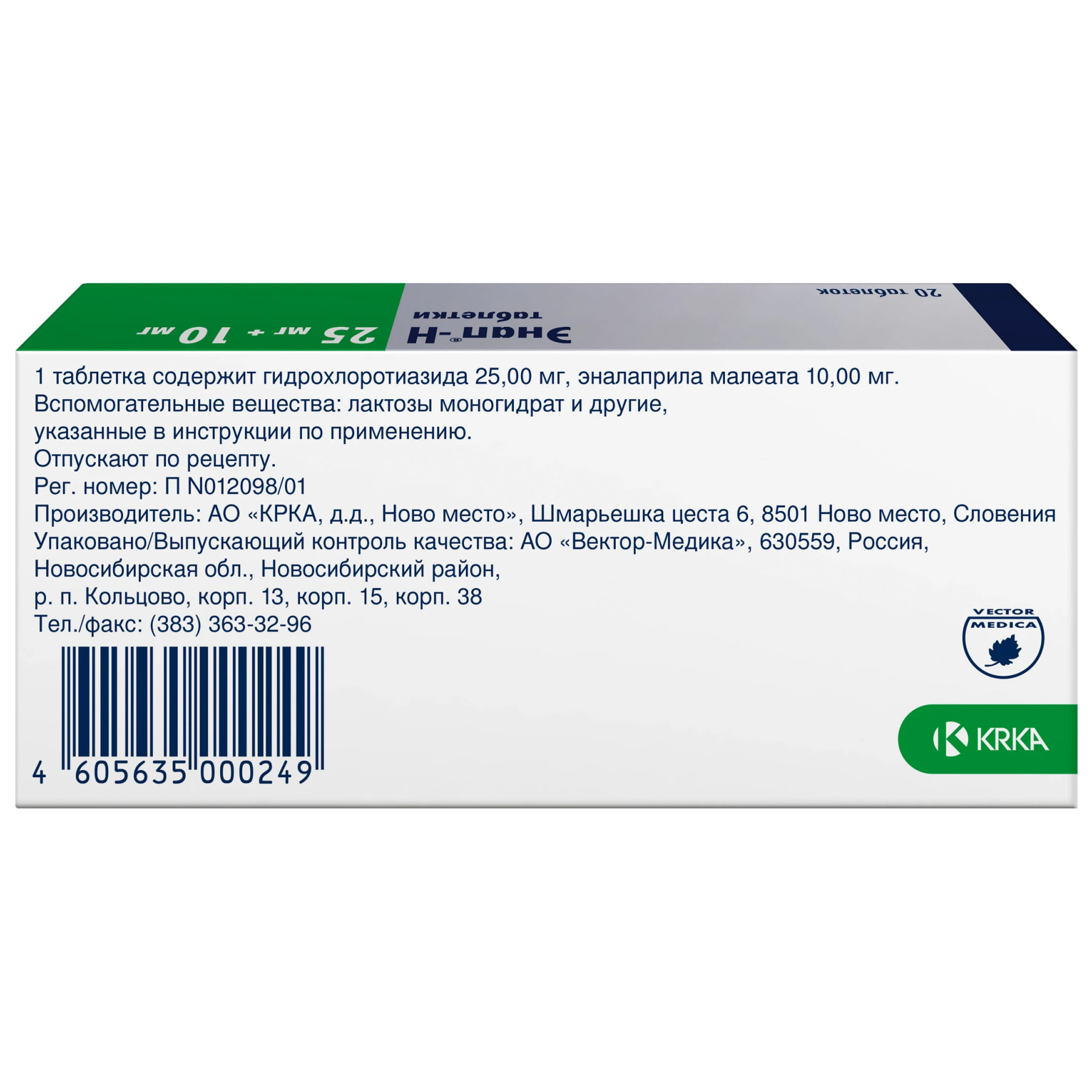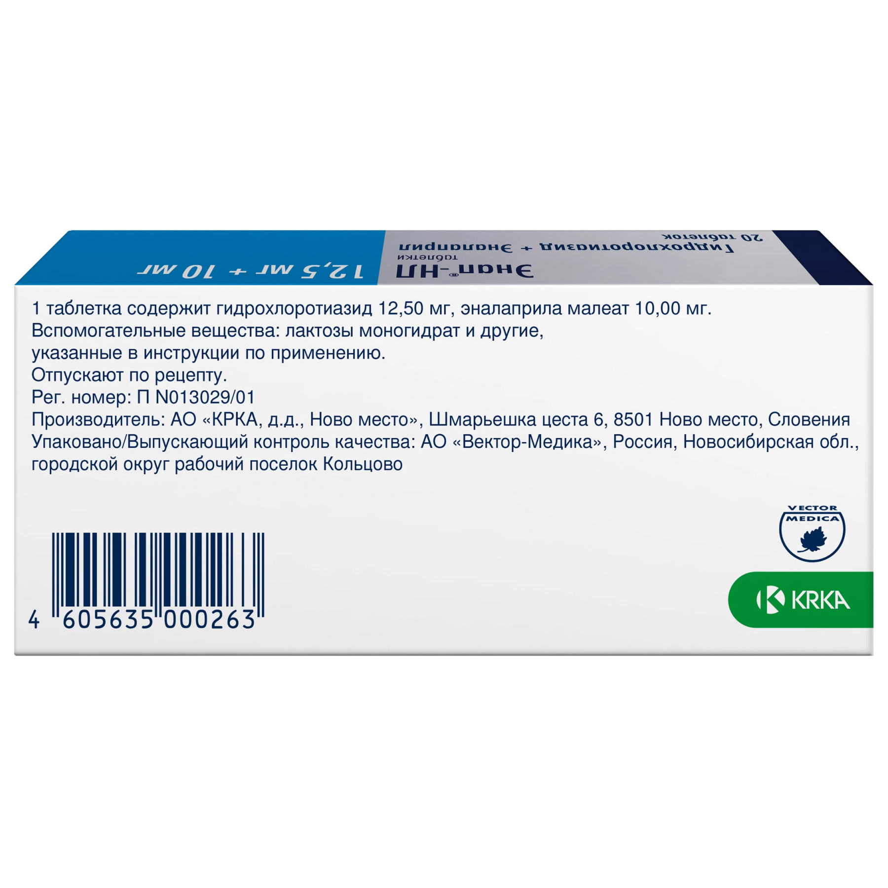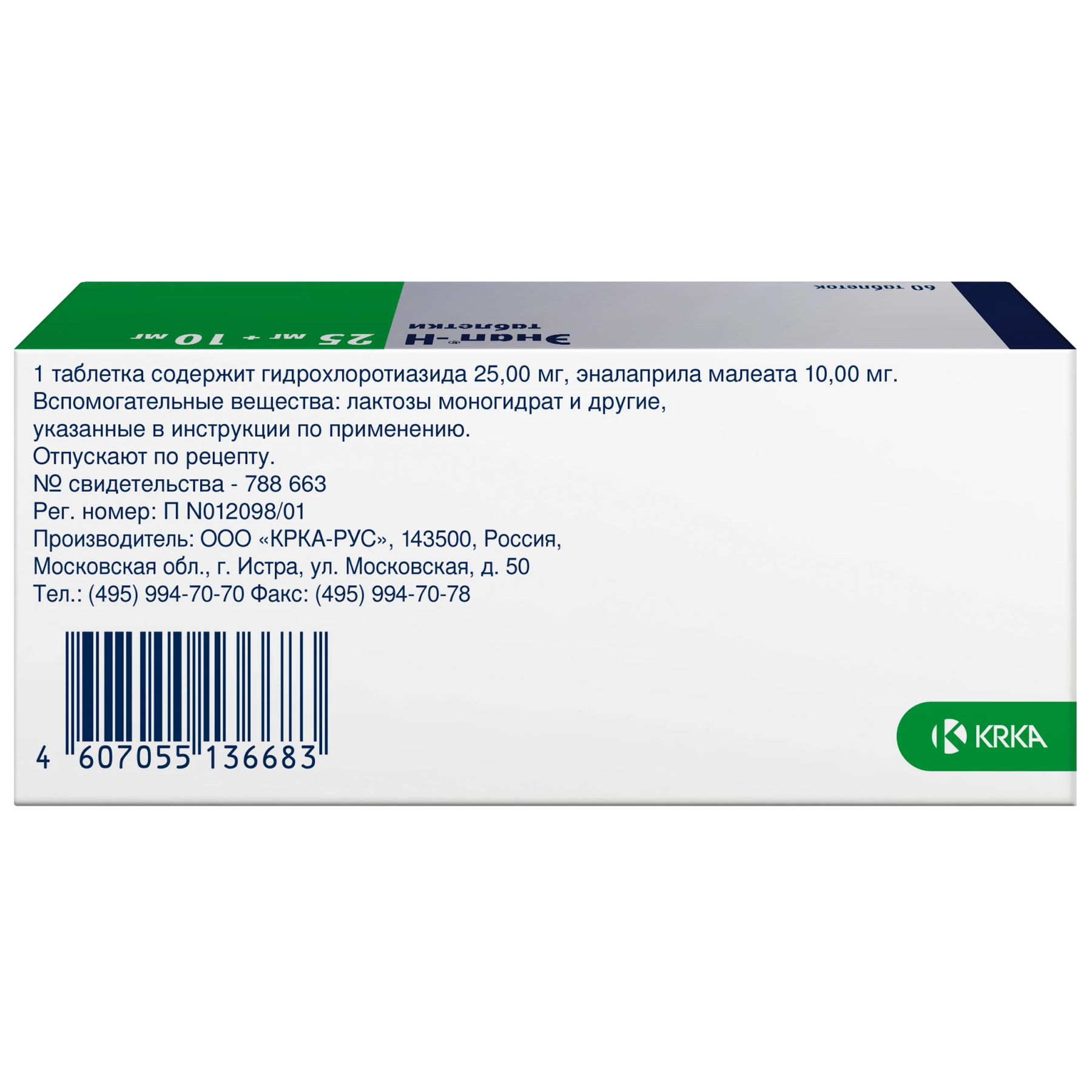 Основной активный компонент — эналаприл в форме малеата. В комбинированных формах также присутствуют гидрохлоротиазид (в составе Энап Н и Энап НЛ).