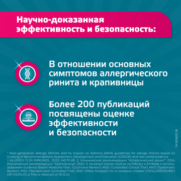 Длительность терапии аллергического ринита зависит от его вида. При сезонной форме, когда симптомы ринита отмечаются менее четырех недель в году и четырех дней в неделю, врач оценит ваше состояние и порекомендует подходящую схему лечения. Обычно прием лекарства можно прекратить при исчезновении признаков аллергии и возобновить при их появлении. В случае круглогодичного аллергического насморка рекомендуется более продолжительное лечение, например, на протяжении периода действия аллергена. Длительность терапевтического курса при крапивнице определяет специалист.