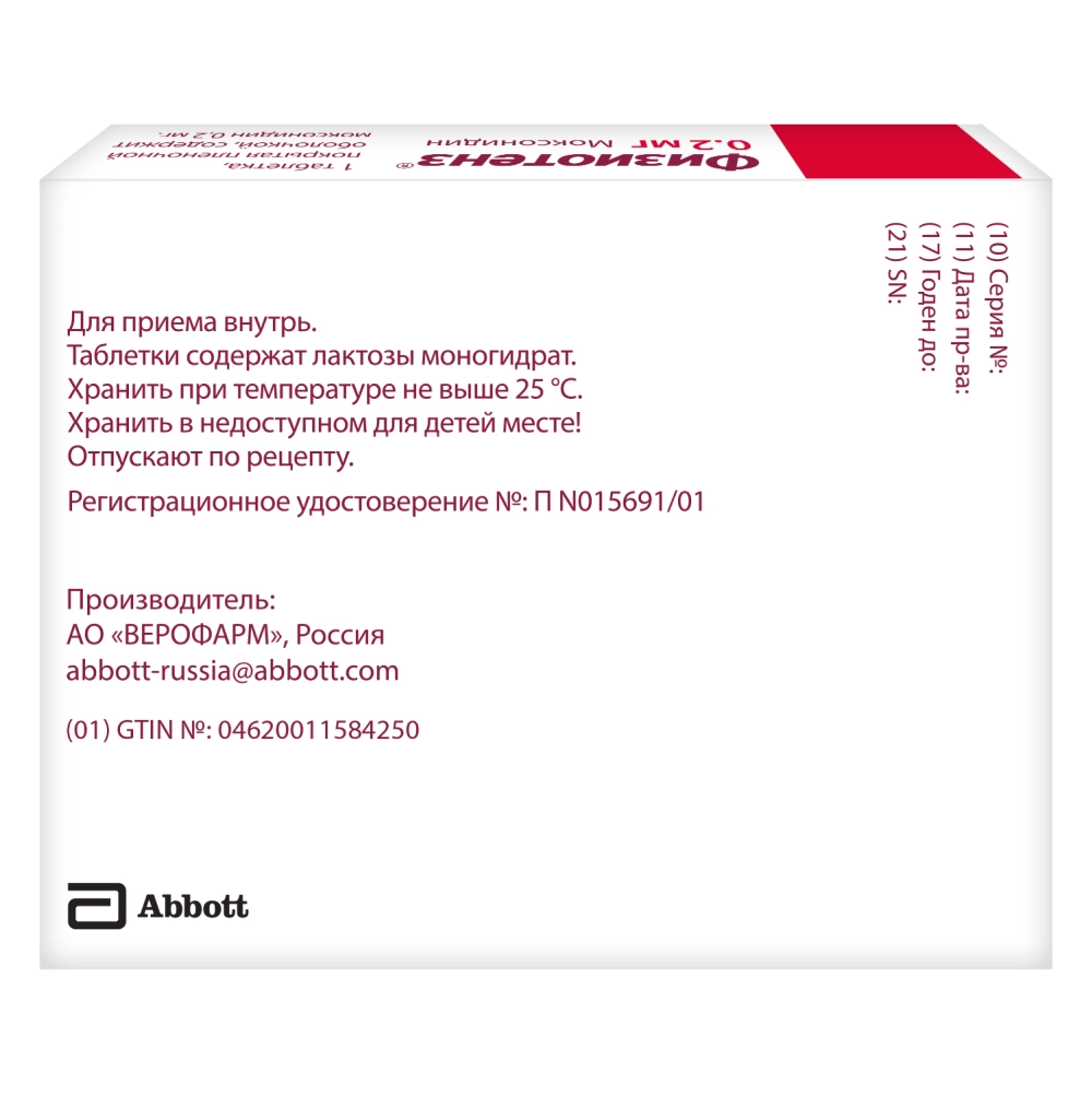 Физиотенз 0,2 мг 14 шт таблетки покрытые пленочной оболочкой