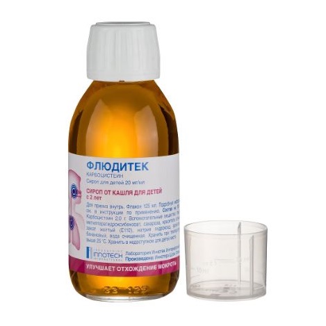 В аптеке можно купить препарат без рецепта врача. Цена Флюдитека зависит от формы выпуска и объема.