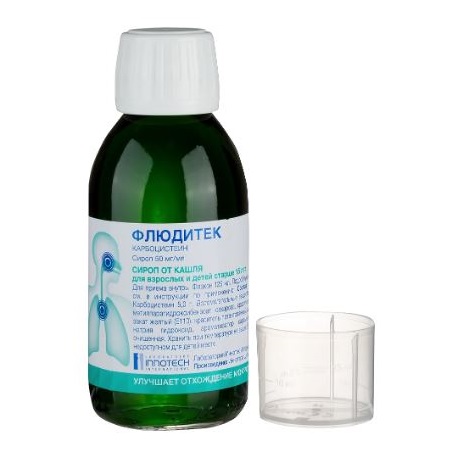 Основное вещество Флюдитека всасывается быстро. У него низкая биологическая доступность (меньше 10% от дозировки). После приема максимальная концентрация в слизистой оболочке дыхательных путей и крови наступает спустя 2-3 ч. Она остается в слизистой на протяжении 8 ч. Метаболизм происходит в печени. Выведение в основном осуществляется почками, в неизменном виде – 30-60%, в некоторой части в форме метаболитов. Время полувыведения составляет примерно 2 ч.