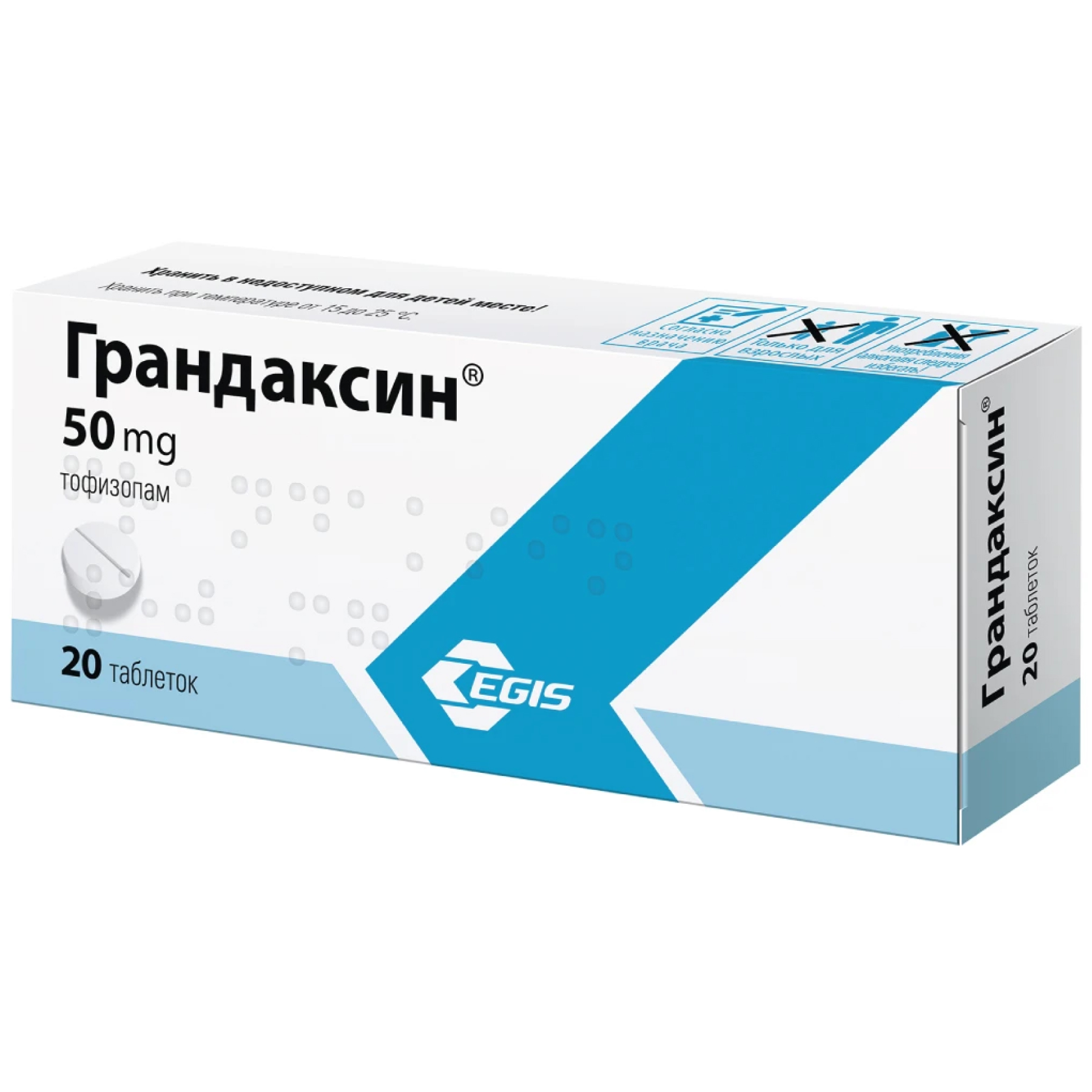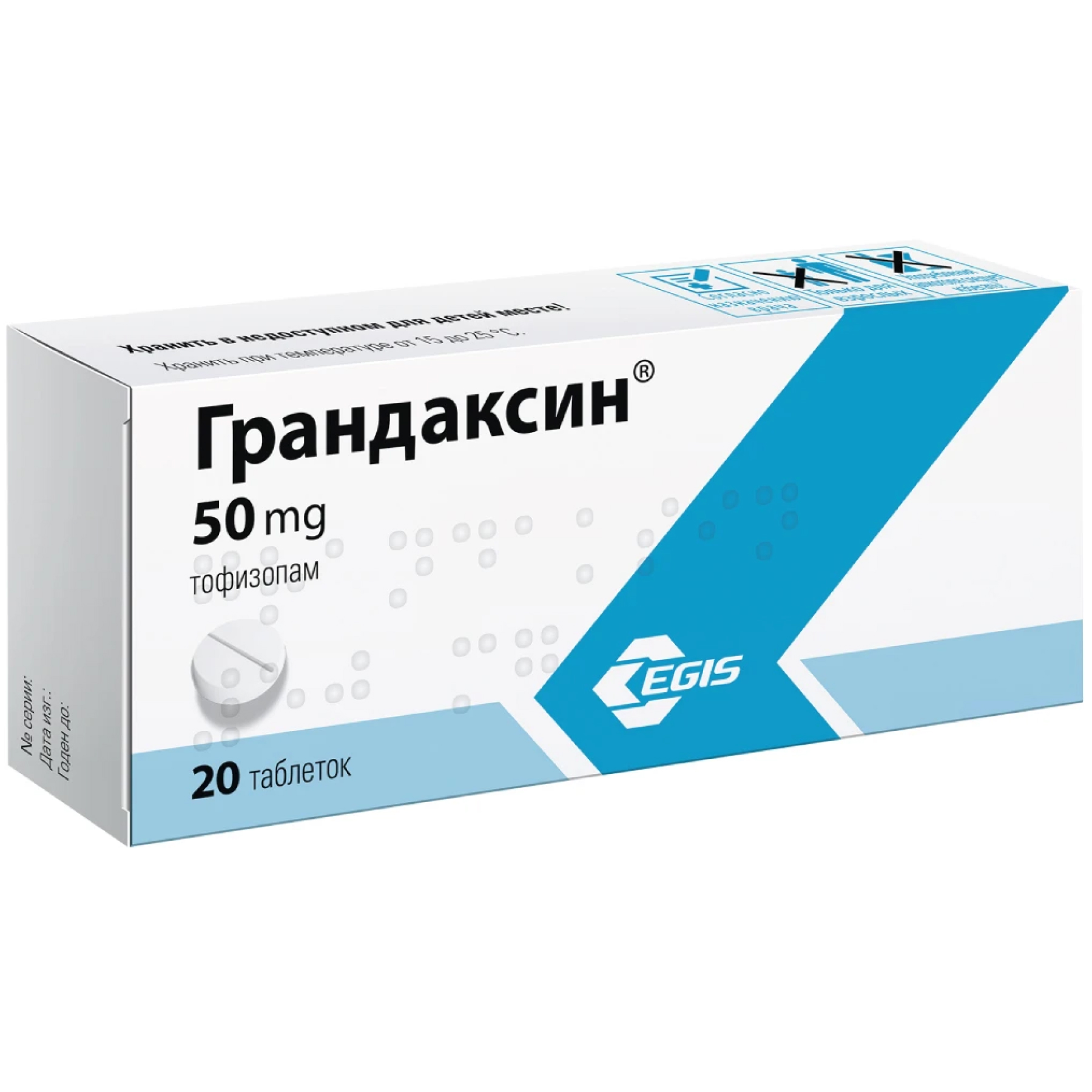 Упакованы в блистеры, которые помещены в картонную коробку с приложенной инструкцией по применению Грандаксина. В упаковке — 20, 60 или 90 таблеток.