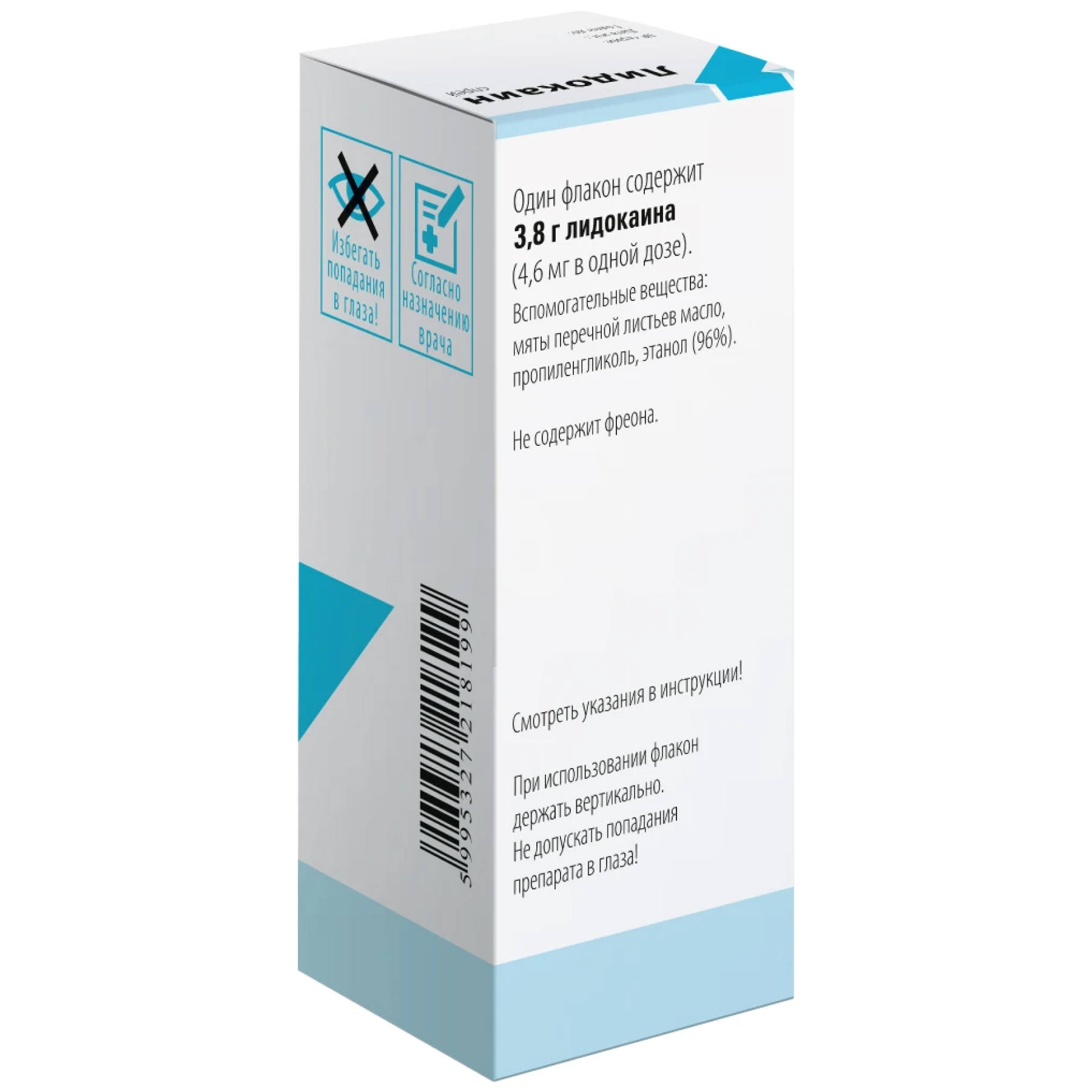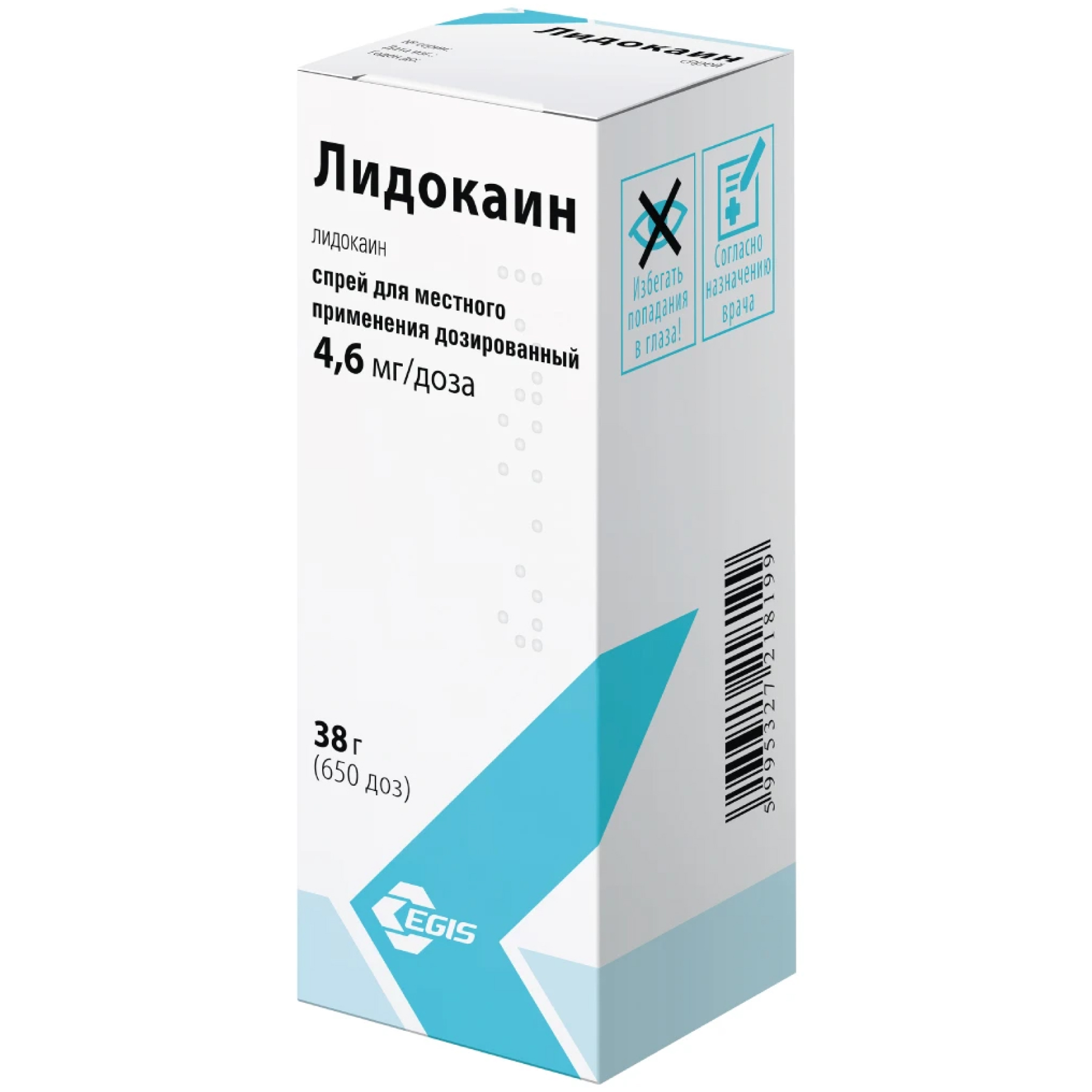 Лидокаин 4,6 мг/доз 650 доз 38 г спрей для местного и наружного применения дозированный