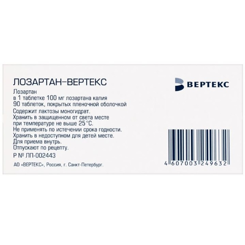 Лозартан Вертекс 100 мг 30 шт таблетки покрытые пленочной оболочкой