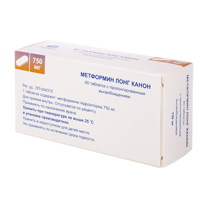Метформин Лонг Канон 750 мг 60 шт таблетки с пролонгированным высвобождением