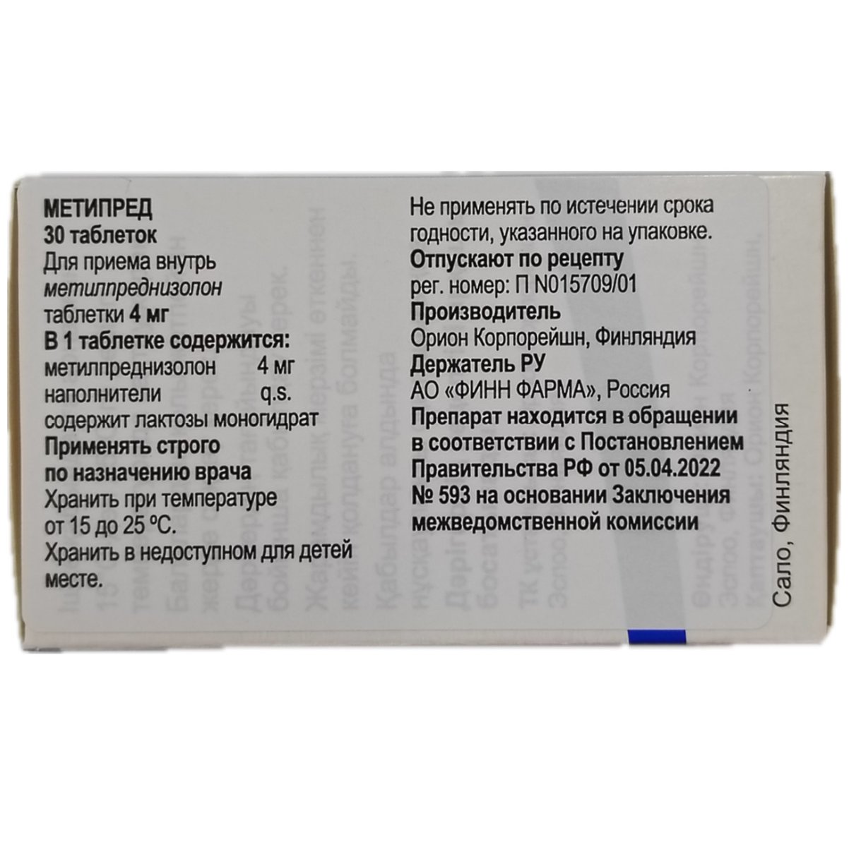 Каждая таблетка Метипреда содержит действующее вещество: метилпреднизолон в дозе 4 мг или 16 мг.