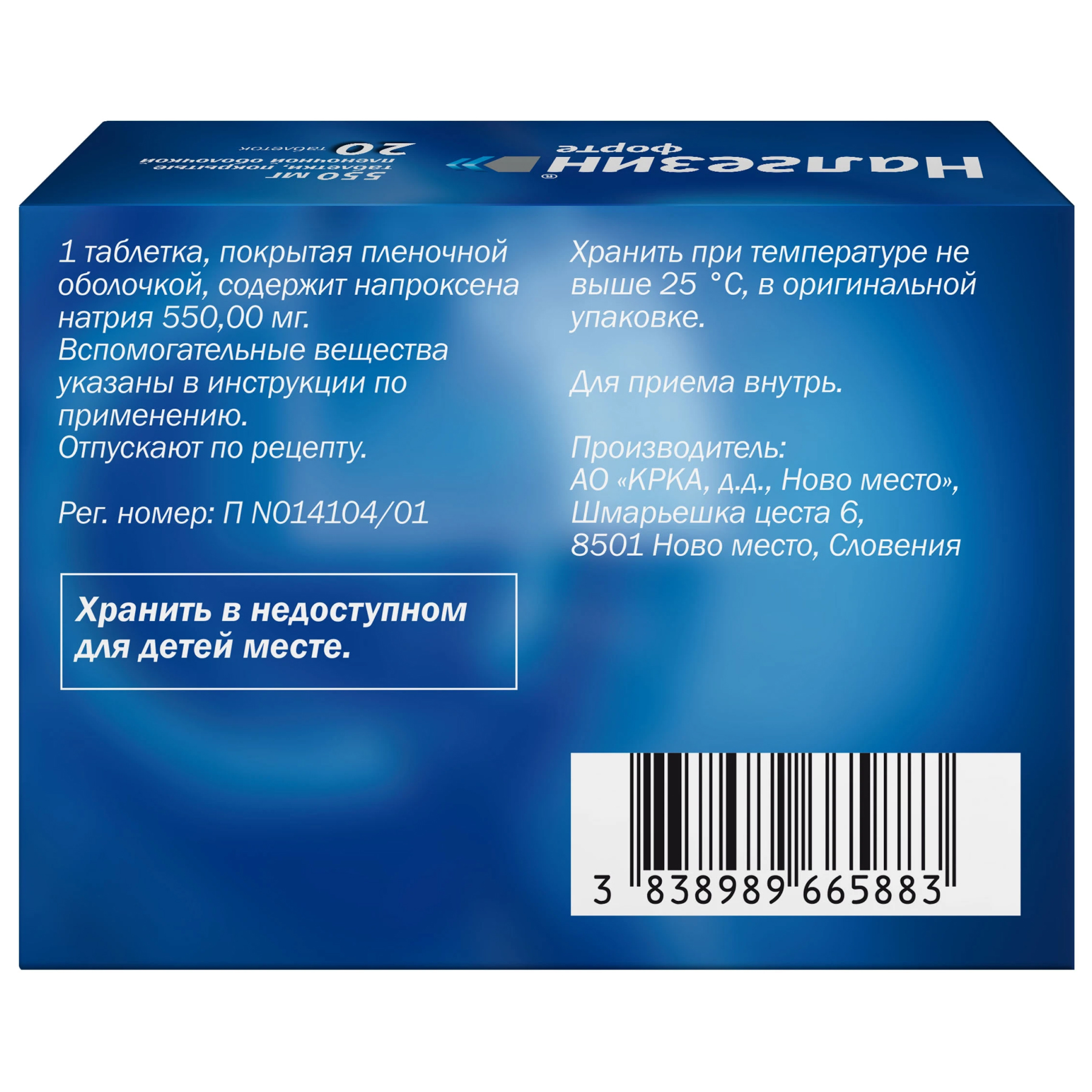 Налгезин Форте 550 мг 20 шт таблетки покрытые пленочной оболочкой