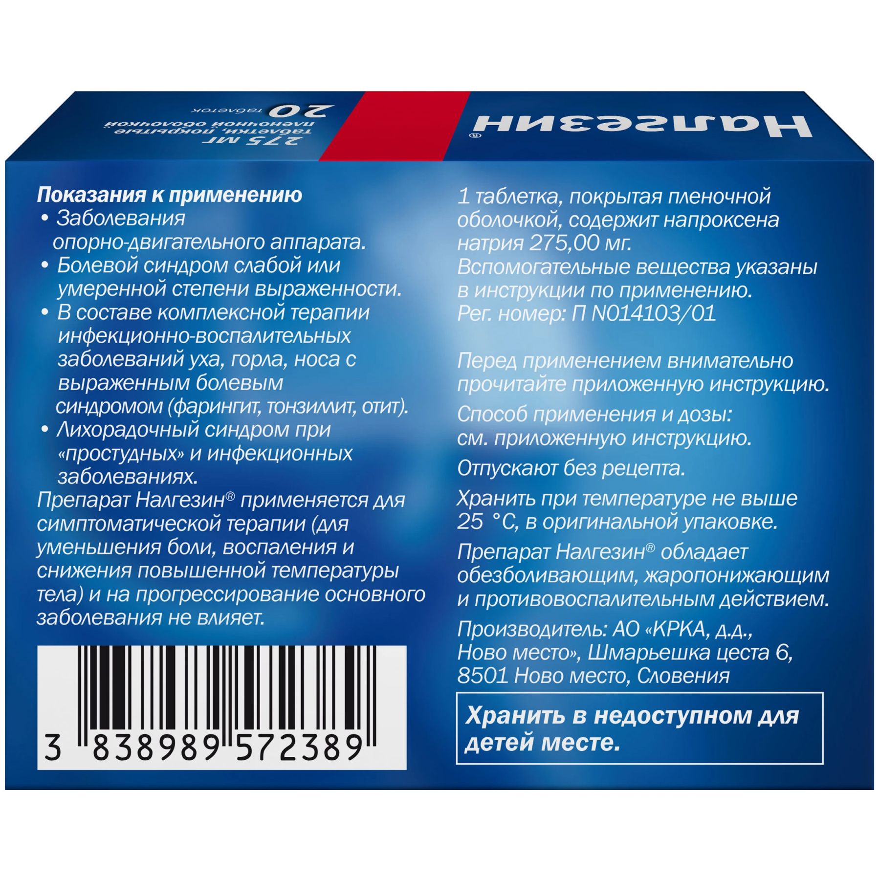 Налгезин 275 мг 20 шт таблетки покрытые пленочной оболочкой