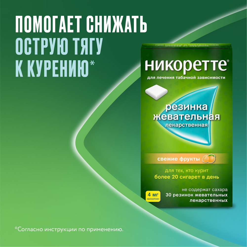 Никоретте используют в ситуациях, когда нужно воздержаться от курения. К примеру, при посещении мест, где это запрещено. В сутки максимальная дозировка составляет 15 таблеток или жевательных резинок, 64 дозы спрея.