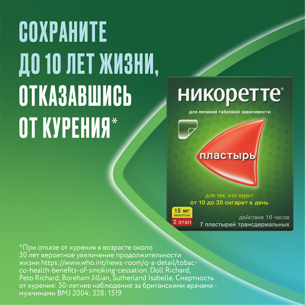 - Полная отмена пластыря сразу после завершения начальной терапии. Затем постепенно уменьшают дозы спрея Никоретте. Максимальное время завершения лечения составляет 1 год.