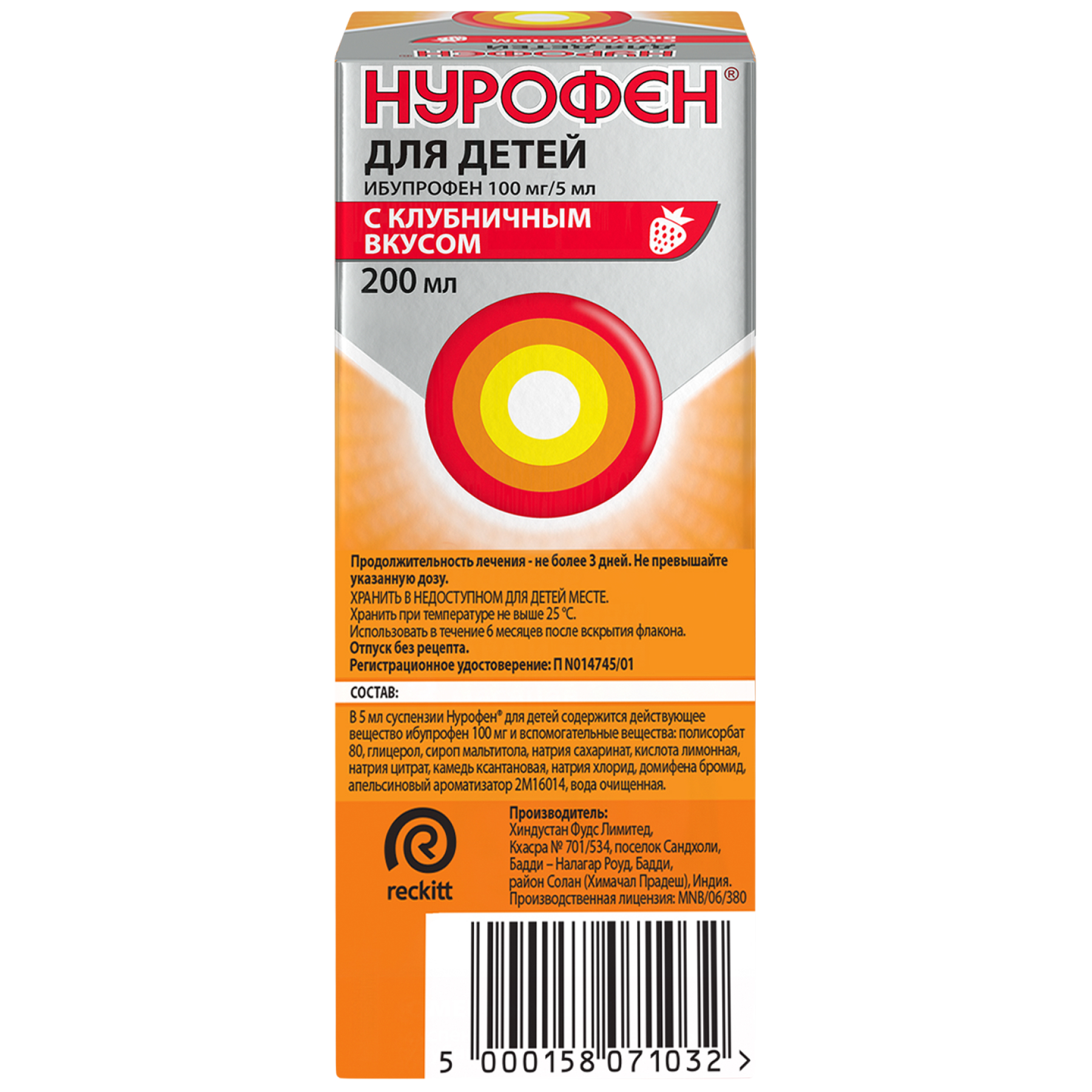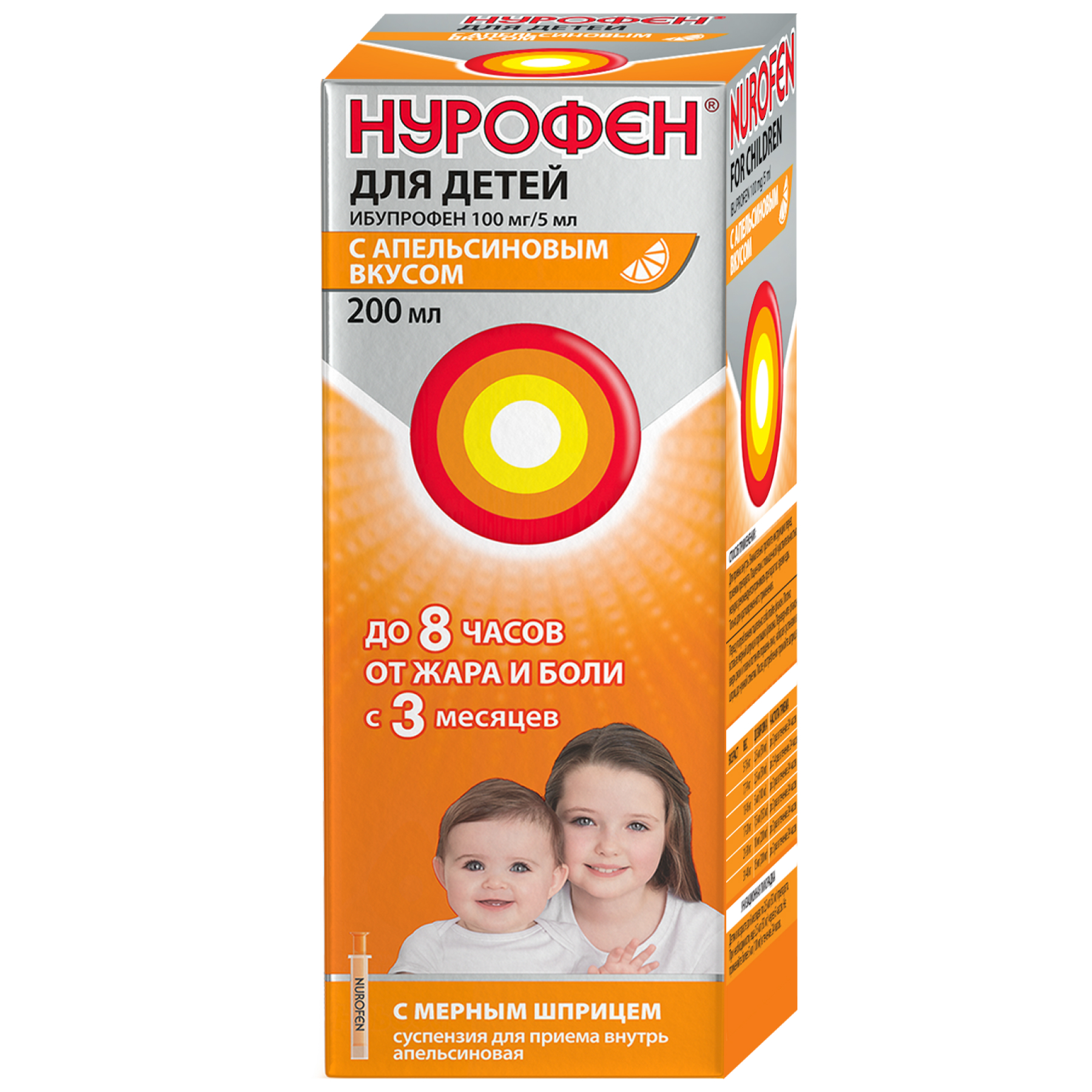 Нурофен для детей 100 мг/5 мл 200 мл суспензия для приема внутрь апельсин