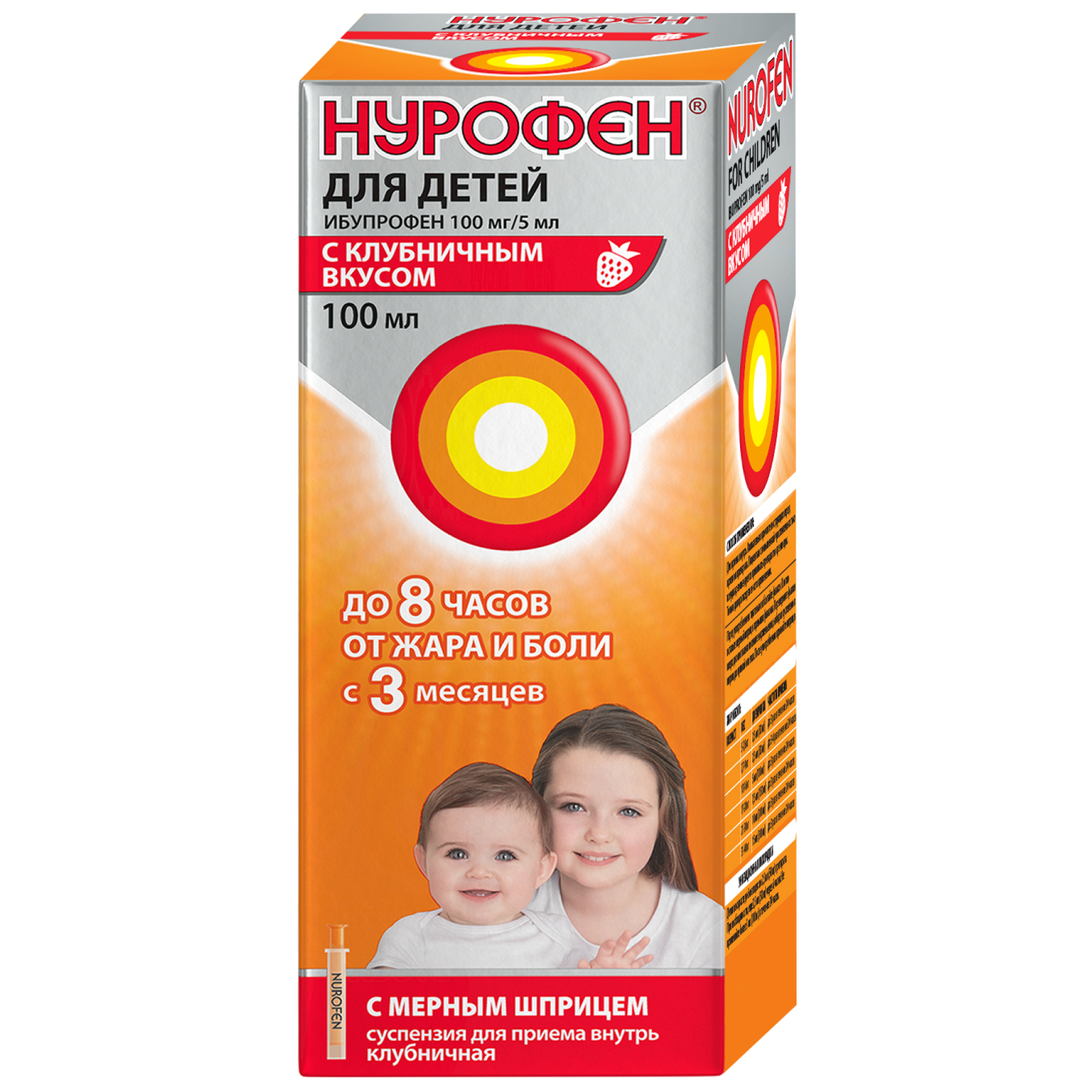 Нурофен для детей 100 мг/5 мл 100 мл суспензия для приема внутрь клубника