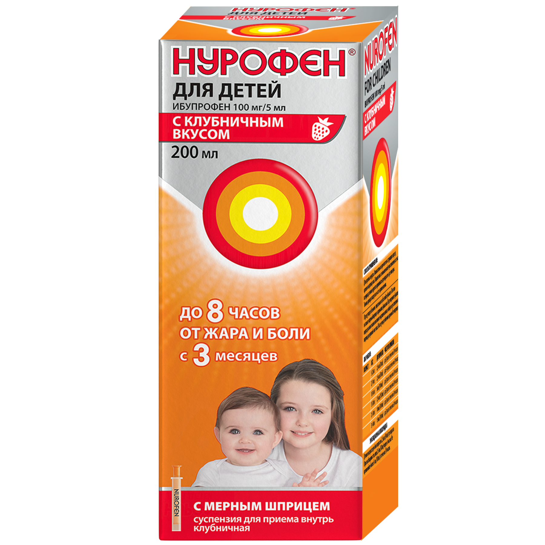 Нурофен для детей 100 мг/5 мл 200 мл суспензия для приема внутрь клубника