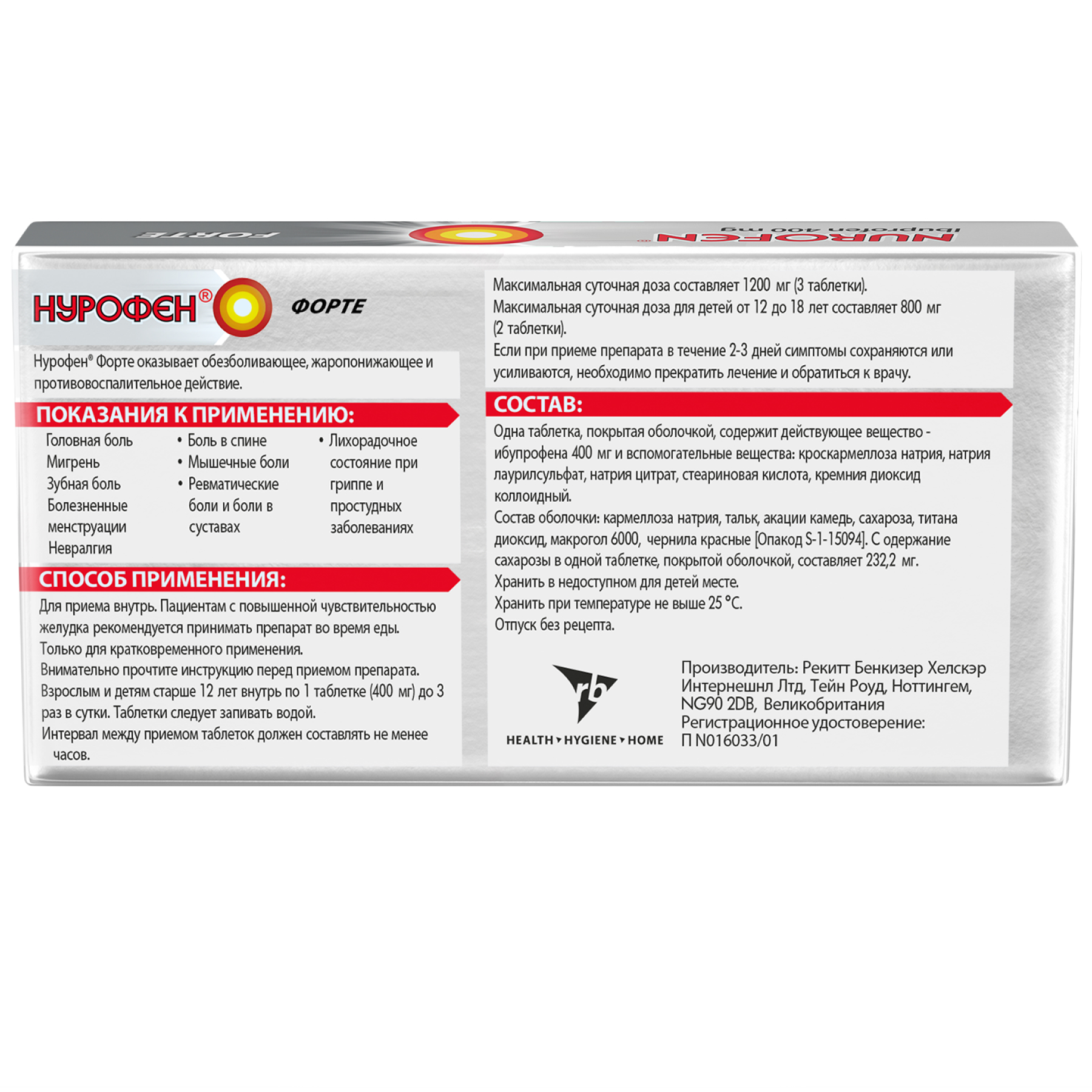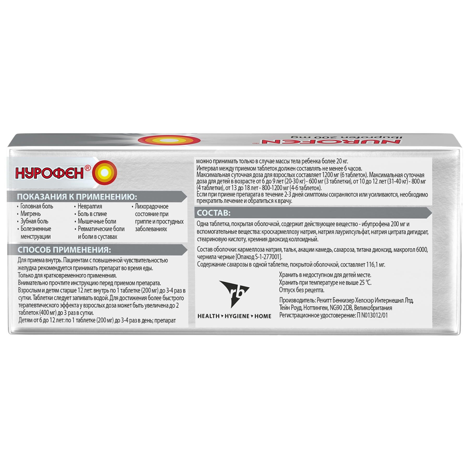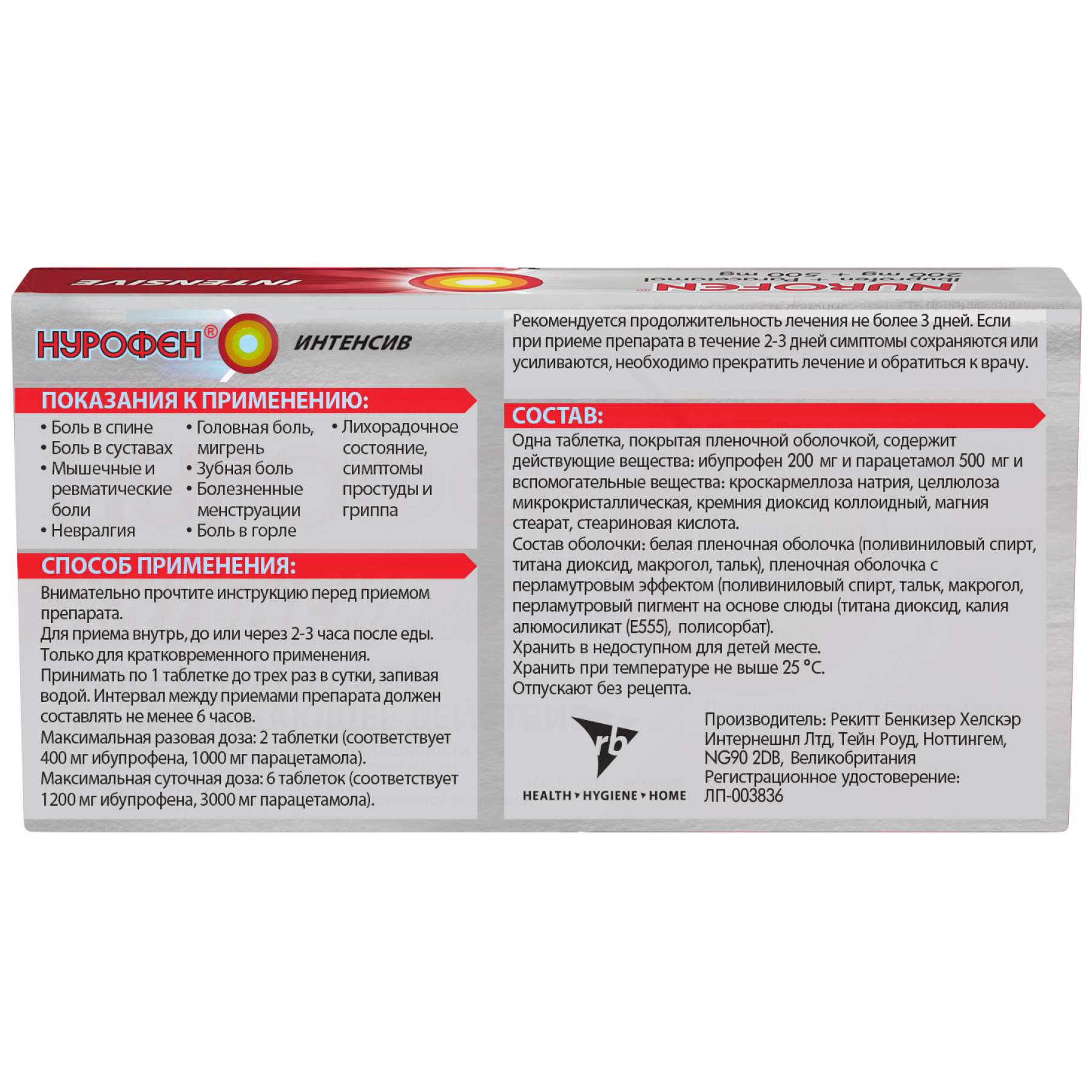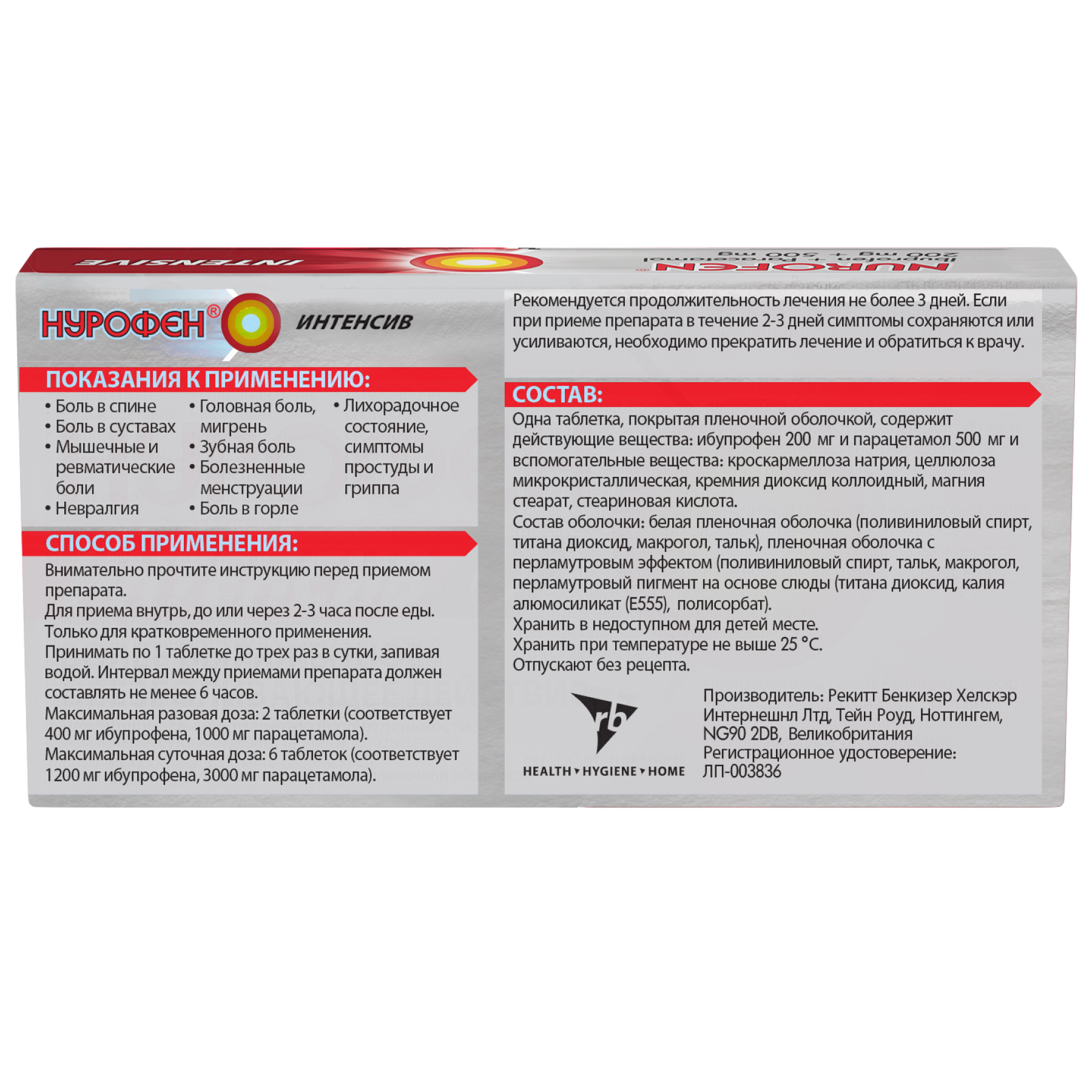 Нурофен Интенсив 200 мг + 500 мг 12 шт таблетки покрытые пленочной оболочкой