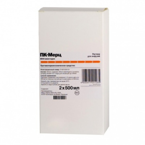 Согласно инструкции, ПК-Мерц в виде раствора используется внутривенно 1-2 раза в день по 500 мл (длительность 3 часа, скорость 55 капель в минуту).