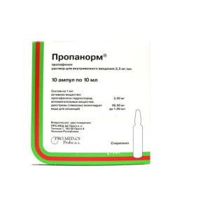 Для внутривенных инъекций дозу препарата из расчета 1,5-2 мг/кг вводят медленно, в течение 10 минут. При отсутствии эффекта – повторно ту же дозировку через 1,5-2 часа. Если на фоне применения отмечается удлинение интервала QT более чем на 20 % по сравнению с исходным, PQ более чем на 50 % или расширение комплекса QRS, введение Пропанорма следует прекратить. Для кратковременных внутривенных инфузий вводят 0,5-2,0 мг/кг в течение 1-3 часов со скоростью 0,5-1 мг/мин. При тяжелой форме аритмии назначают кратковременные или продолжительные инфузии препарата в 5 % растворе глюкозы. Важно отметить, что нельзя смешивать с 0,9 % раствором натрия хлорида из-за возможного образования осадка.