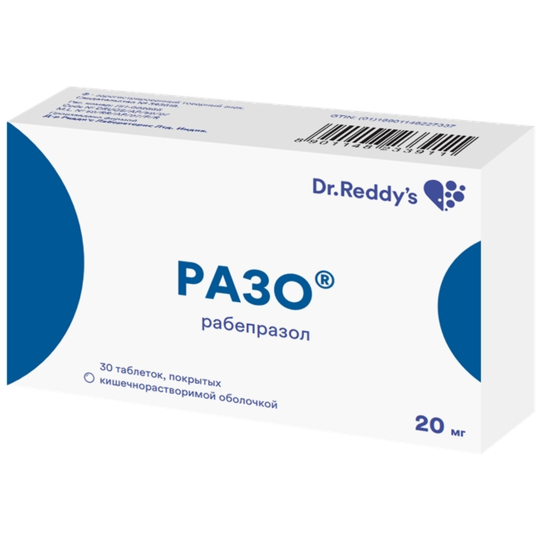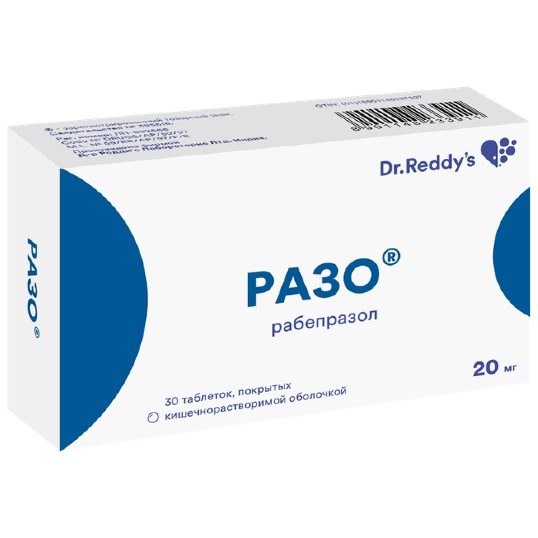 Разо 20 мг 30 шт таблетки покрытые кишечнорастворимой оболочкой