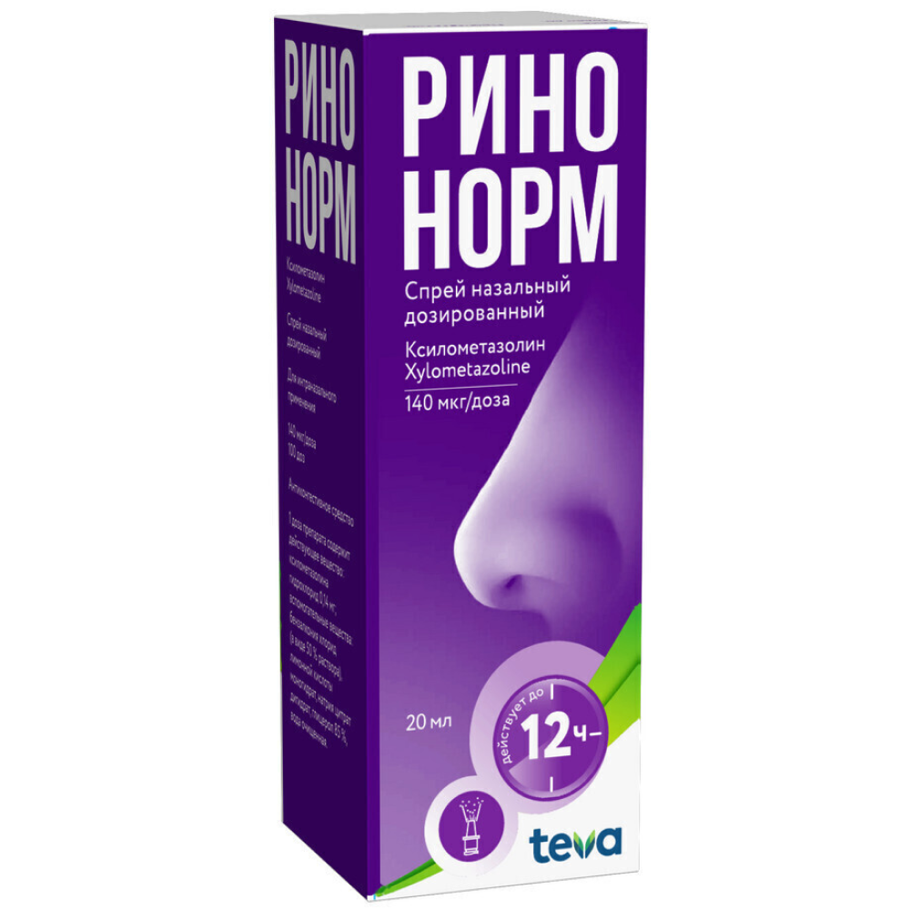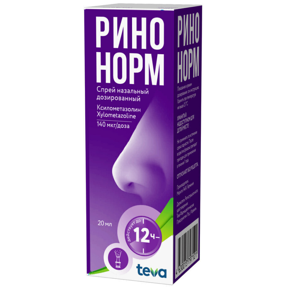 Все аналогиРинонорм — это назальный препарат из группы деконгестантов, применяемый при заложенности носа. Средство относится к симпатомиметикам для местного использования. Медикамент сужает сосуды слизистой оболочки, устраняет отек и восстанавливает дыхание через нос. Действие наступает через две минуты после впрыскивания и продолжается до двенадцати часов. Спрей для носа помогает при остром рините, аллергическом насморке, синусите и других респираторных заболеваниях.
