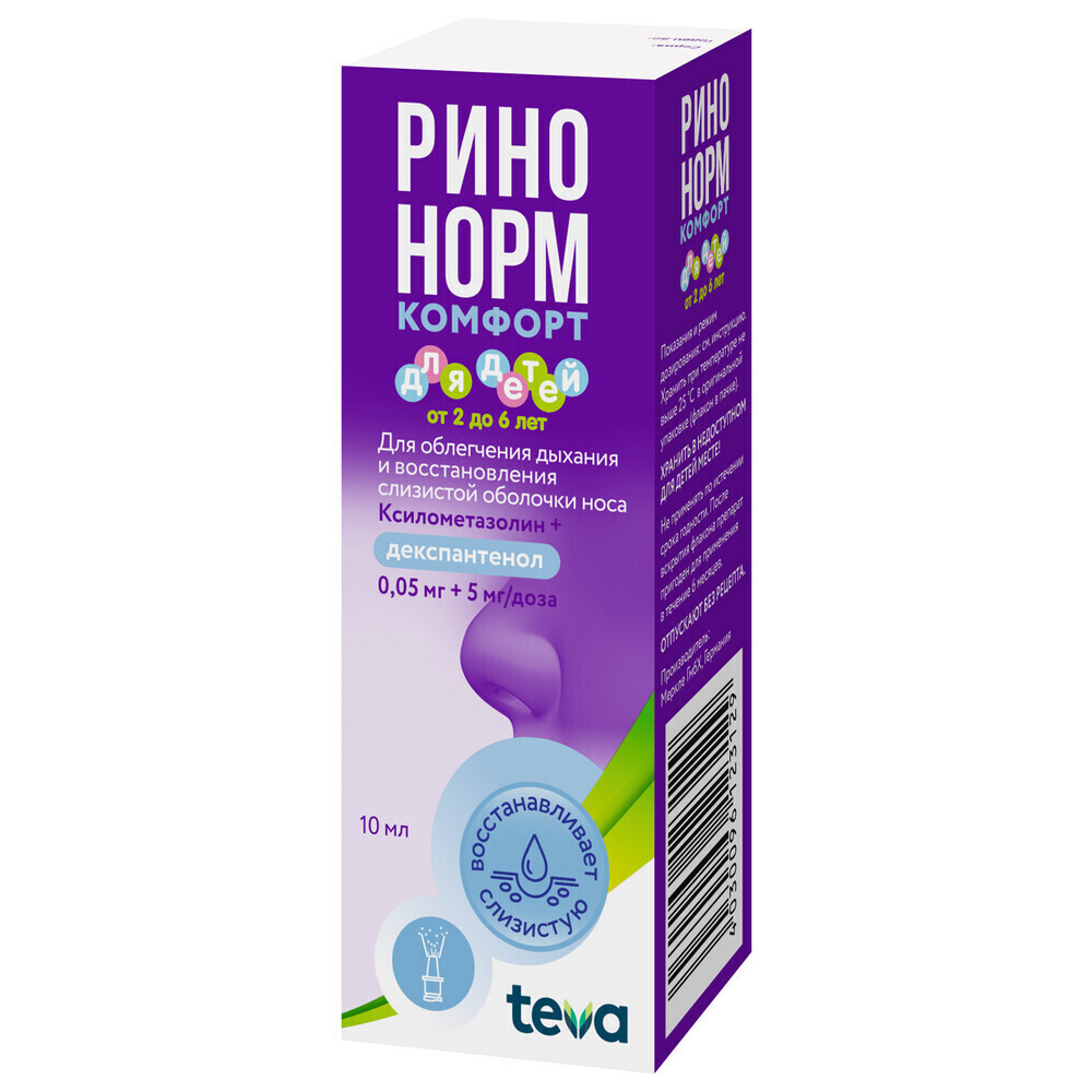 Ринонорм Комфорт 0,1 мг + 5 мг 10 мл 90 доз спрей назальный