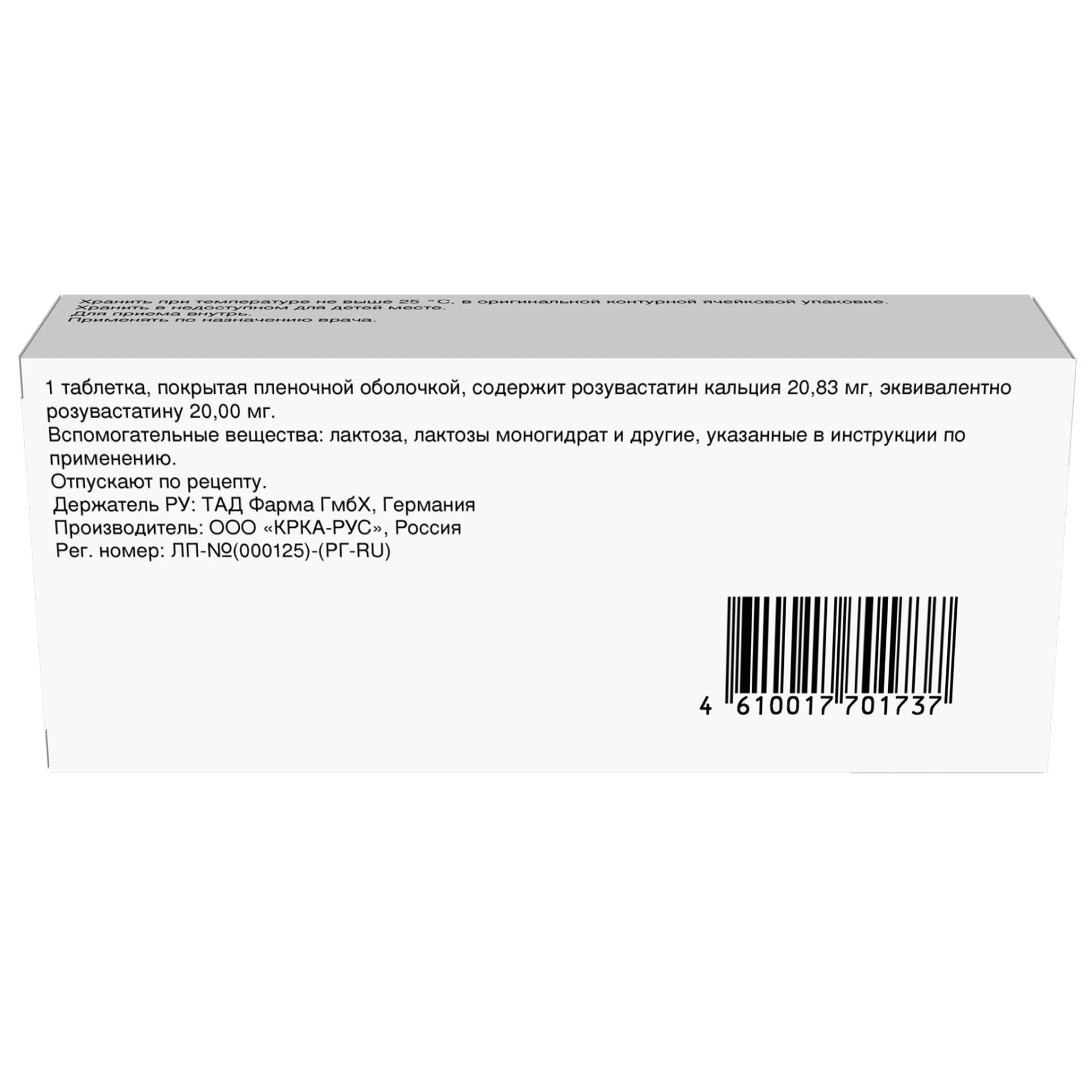 Розувастатин 20 мг 30 шт таблетки покрытые пленочной оболочкой