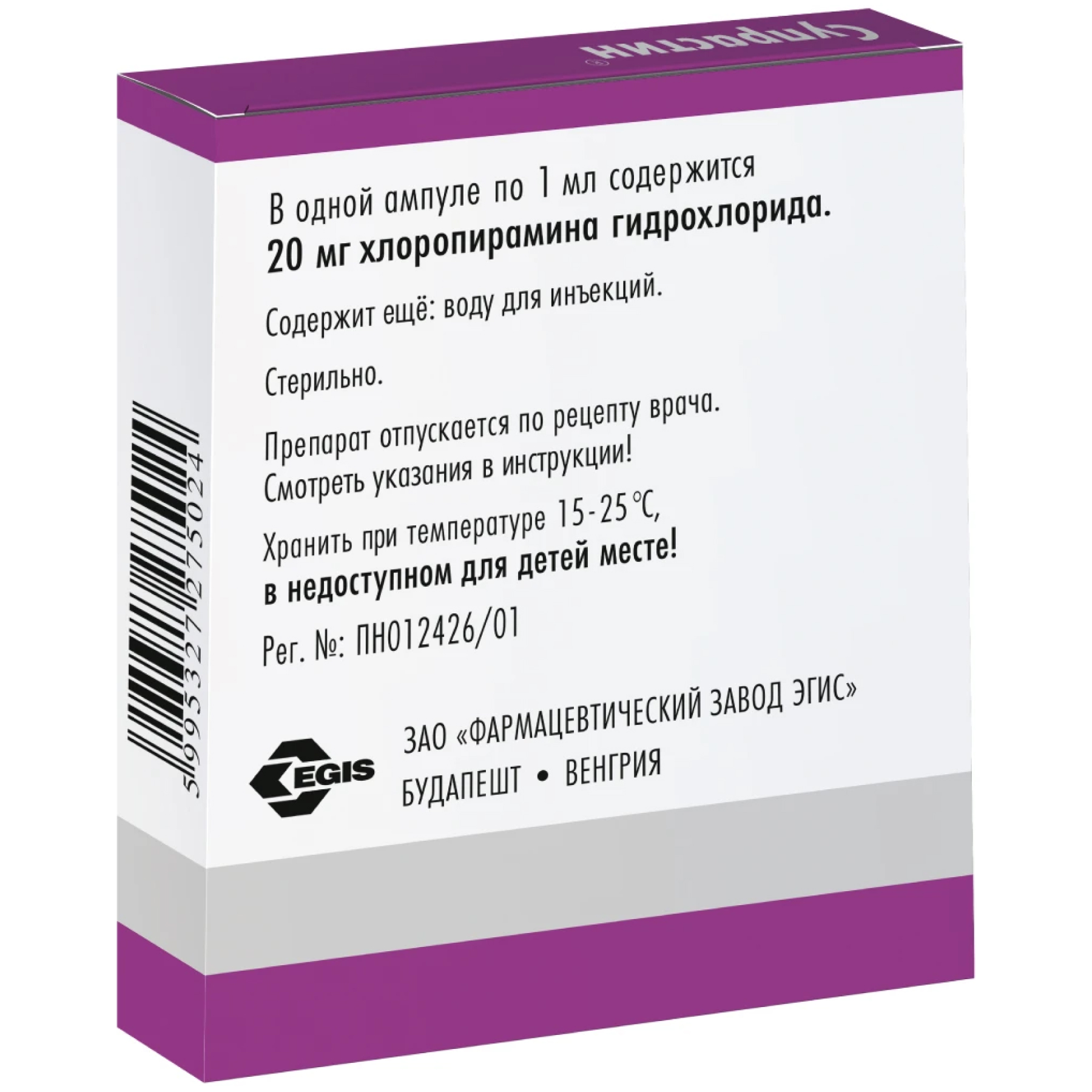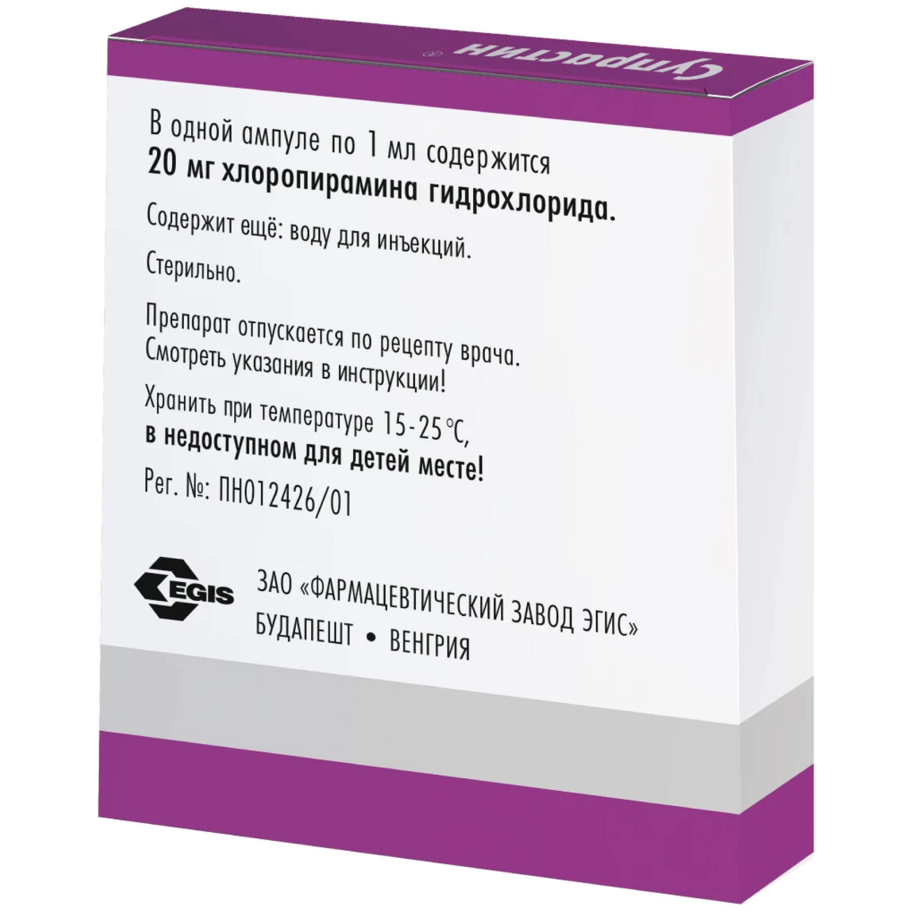 Супрастин 20 мг/мл 1 мл 5 шт раствор для внутривенного и внутримышечного введения