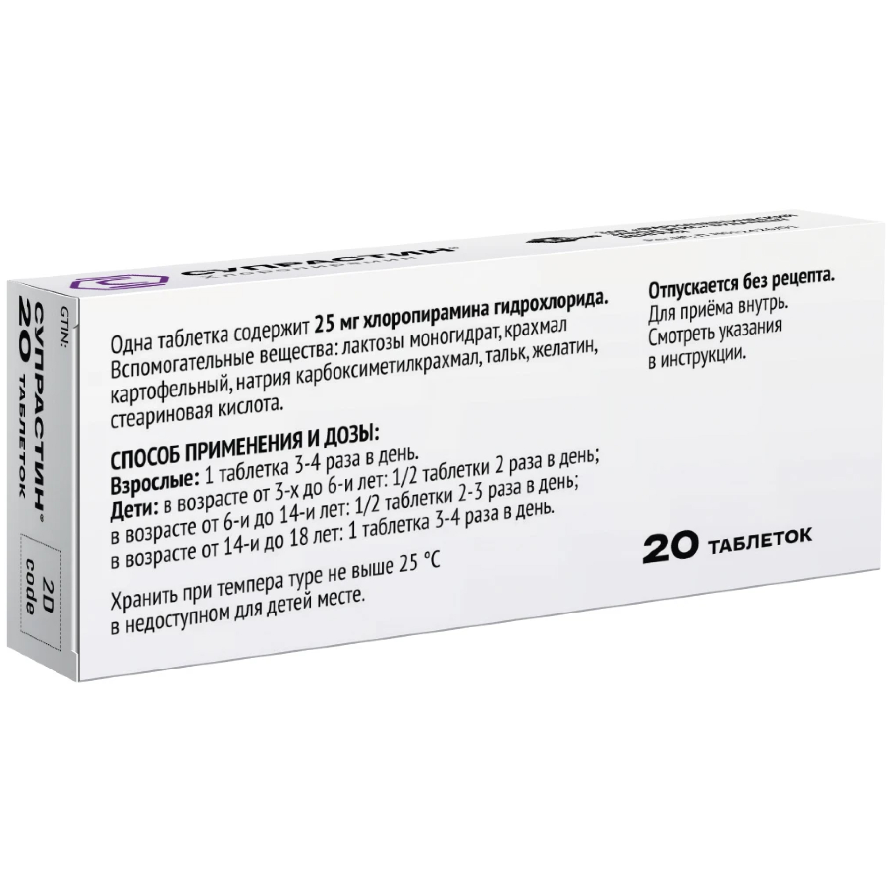 Все аналогиТаблетки серовато-белого цвета в виде диска. На одной стороне имеется риска для разделения, на другой – гравировка «SUPRASTIN». В одной контурной ячейковой упаковке 10 таблеток. Два или четыре блистера помещают в пачки из картона, куда вкладывают инструкцию по применению Супрастина.