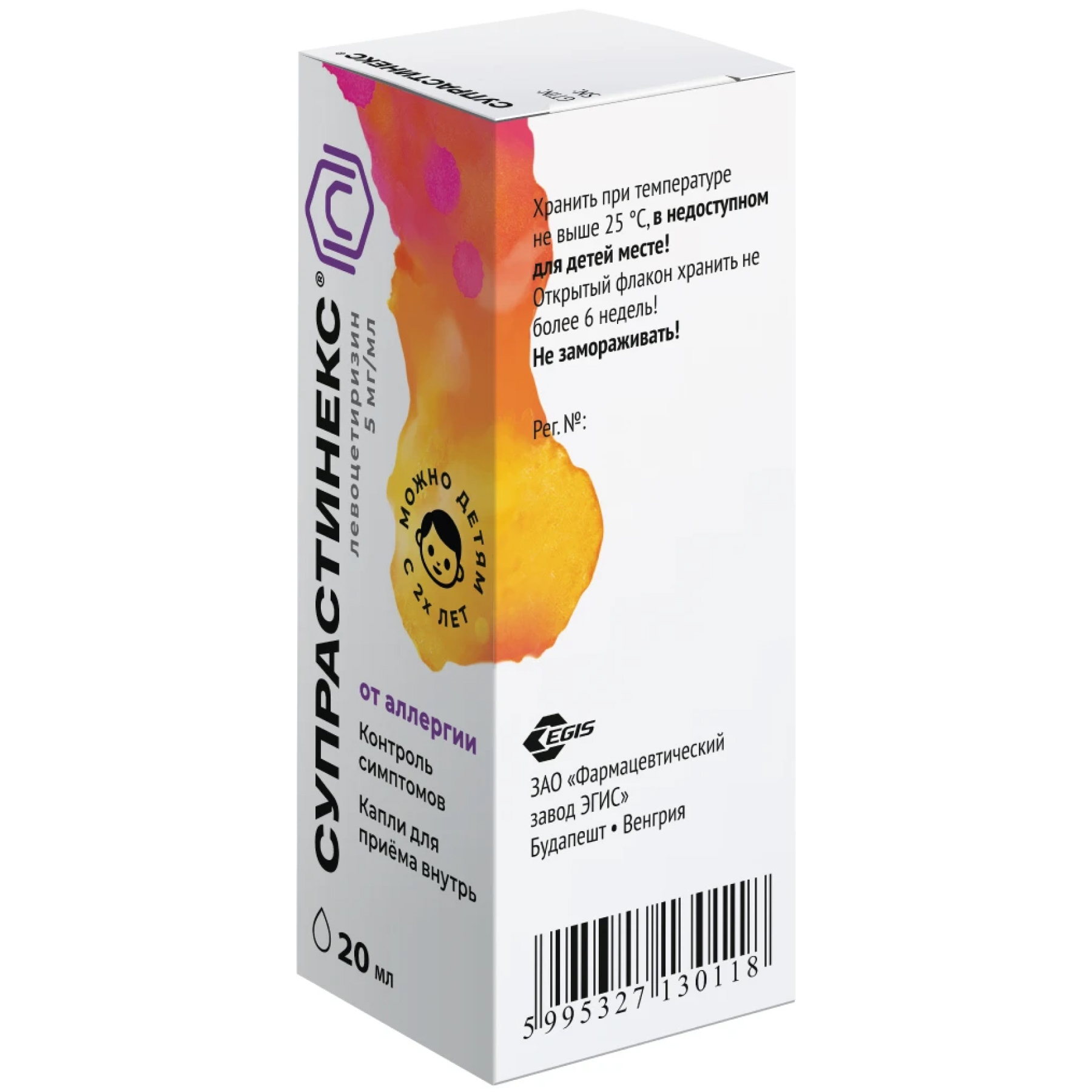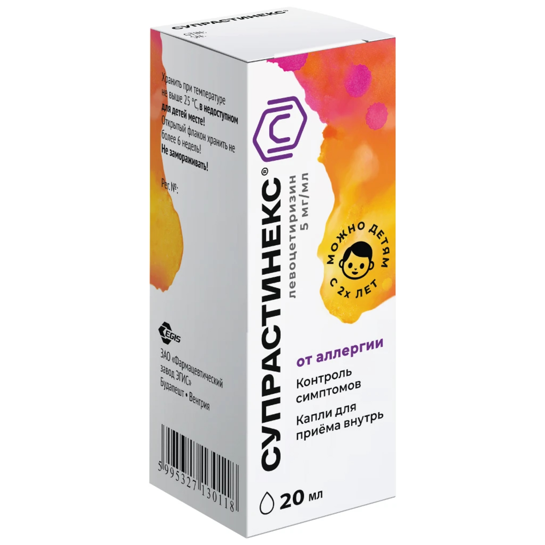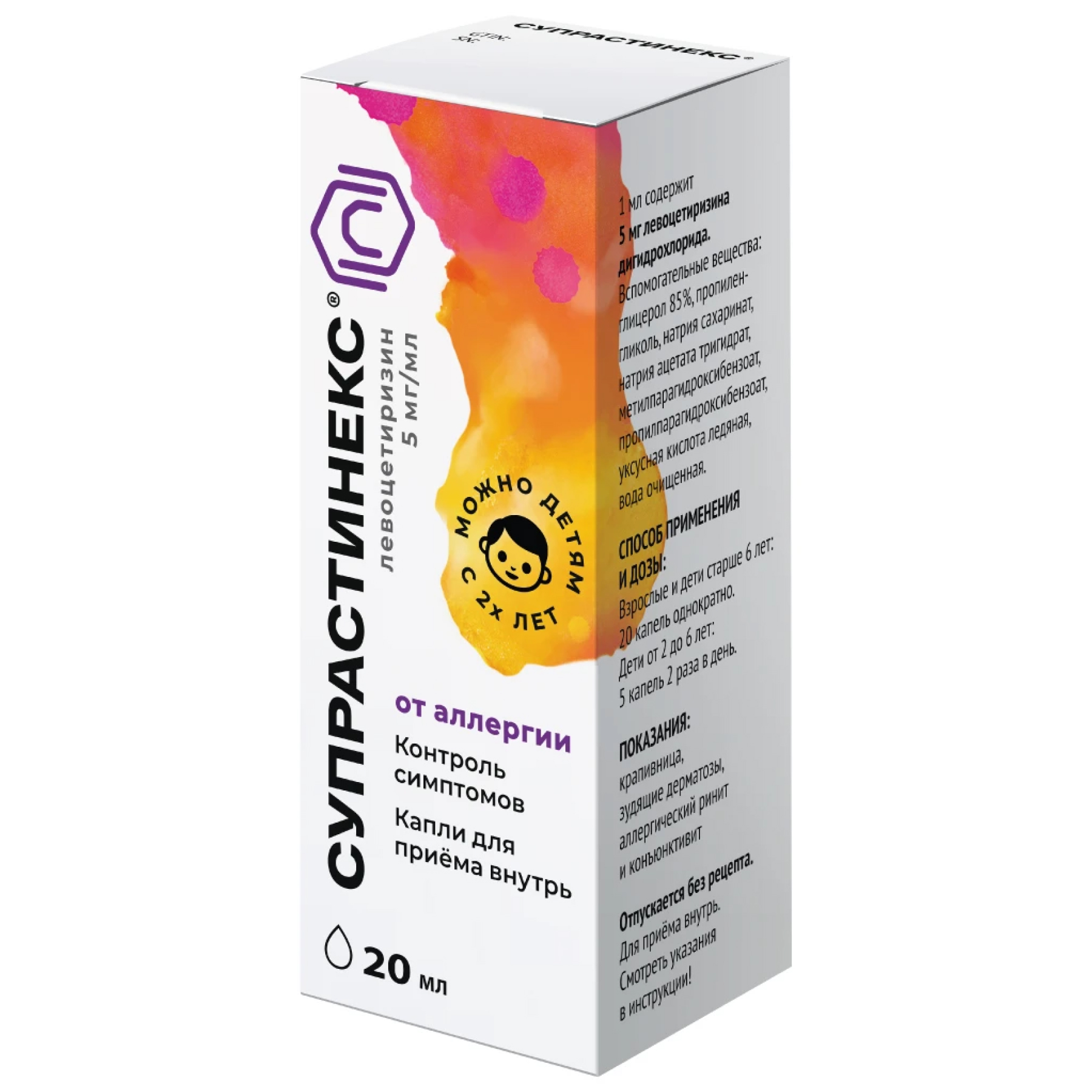 Рекомендуемая суточная дозировка Супрастинекс – 5 мг (20 капель) однократно. Для детей в возрасте 2-6 лет – по 1,25 мг (5 капель) 2 раза в день.