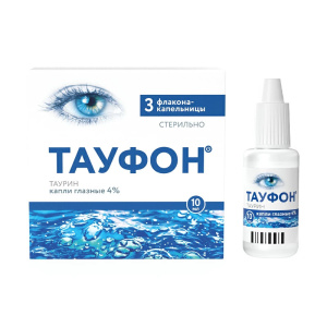Все аналогиТауфон применяют при возрастных изменениях зрения, дистрофии роговицы, различных формах катаракты. Средство относится к группе метаболических противокатарактных препаратов. Лекарство стимулирует восстановительные процессы в тканях глаза, замедление прогрессирования дистрофических изменений, улучшение обменных процессов.