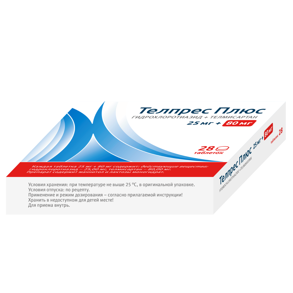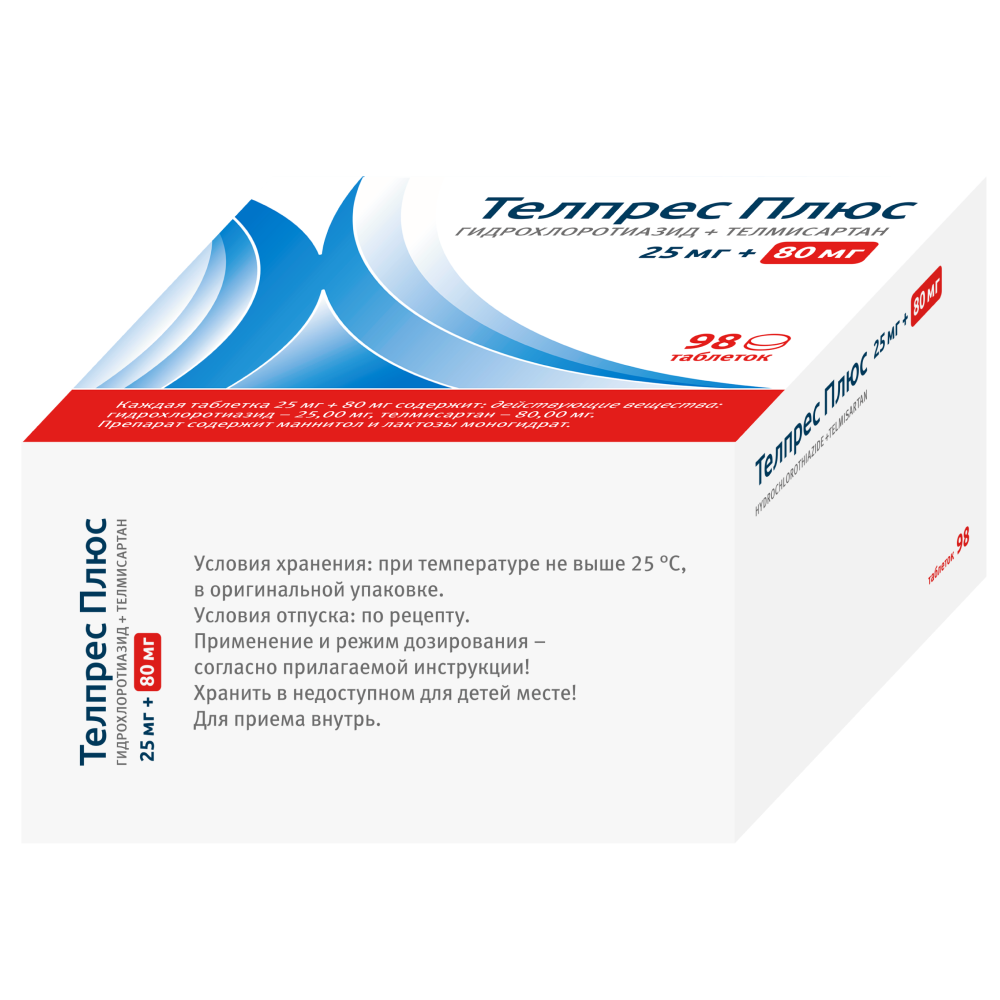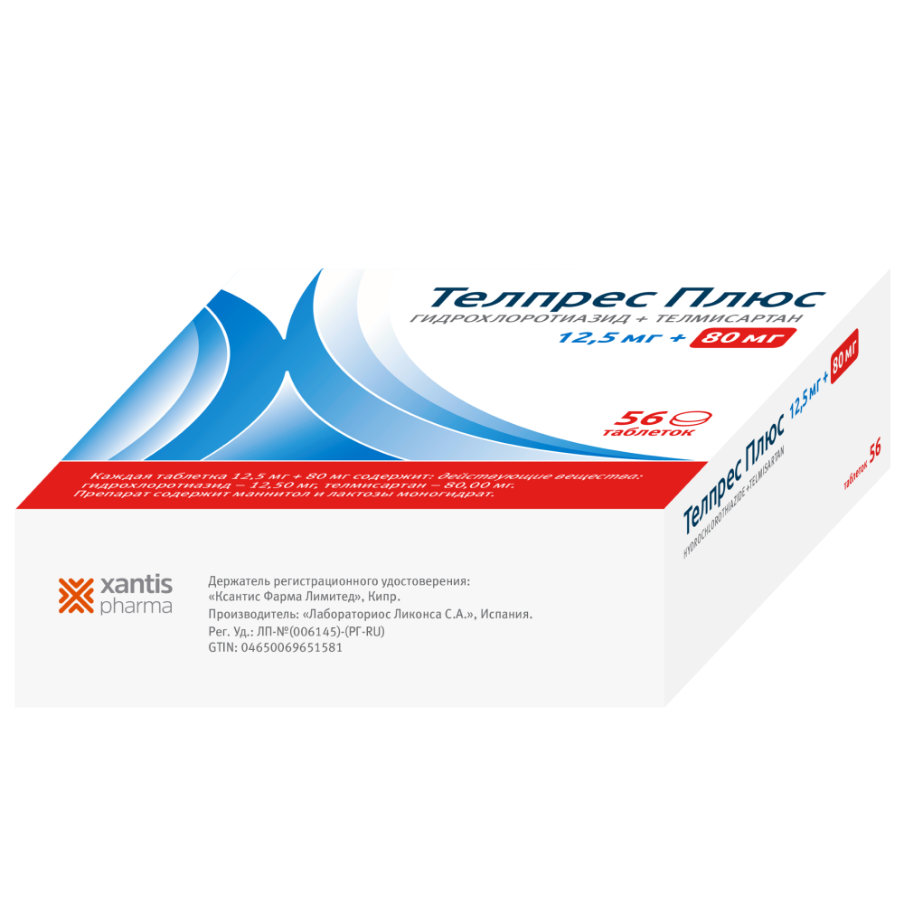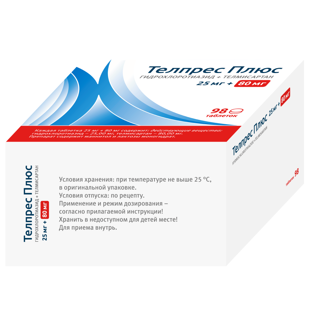 Этот активный компонент также присутствует в комбинированном препарате – таблетках Телпрес Плюс. В инструкции к ним указано второе действующее вещество – гидрохлоротиазид. Этот тиазидный диуретик тоже снижает артериальное давление (АД).