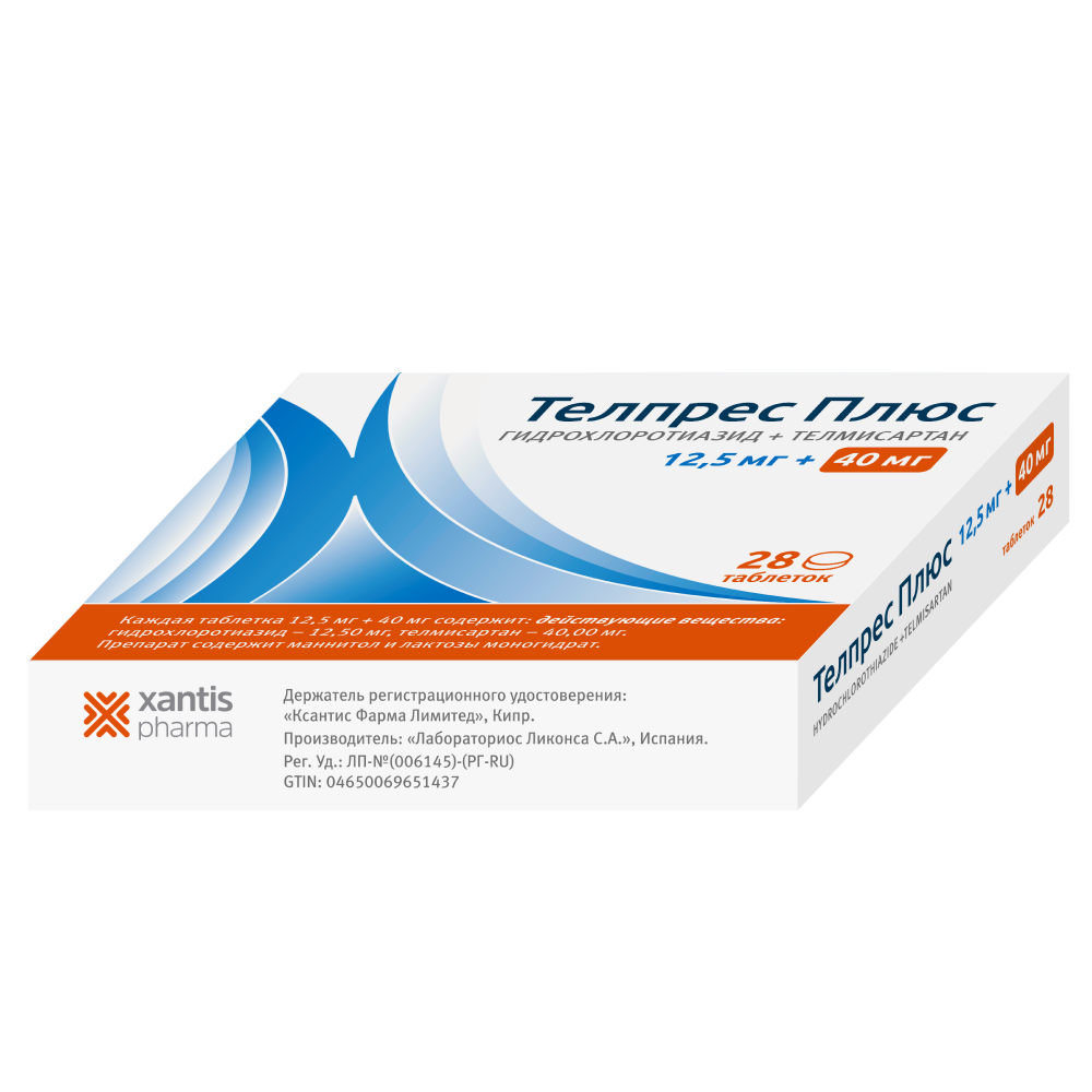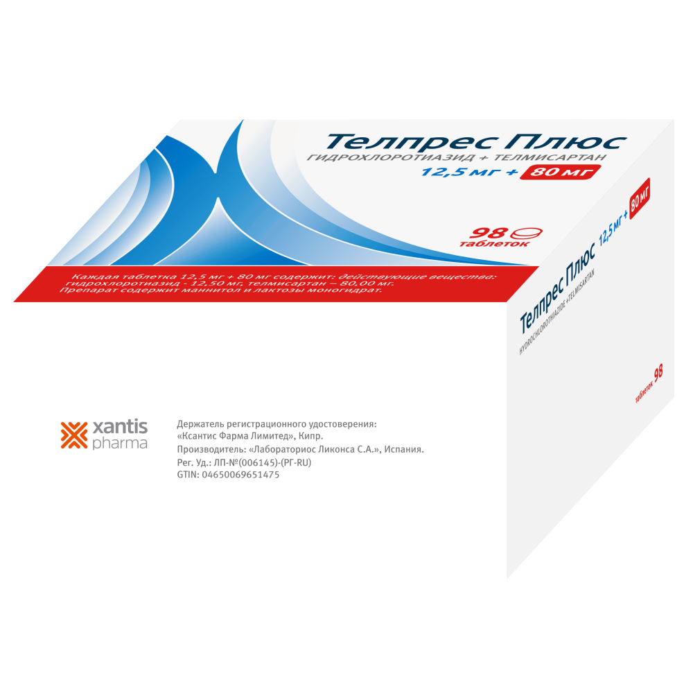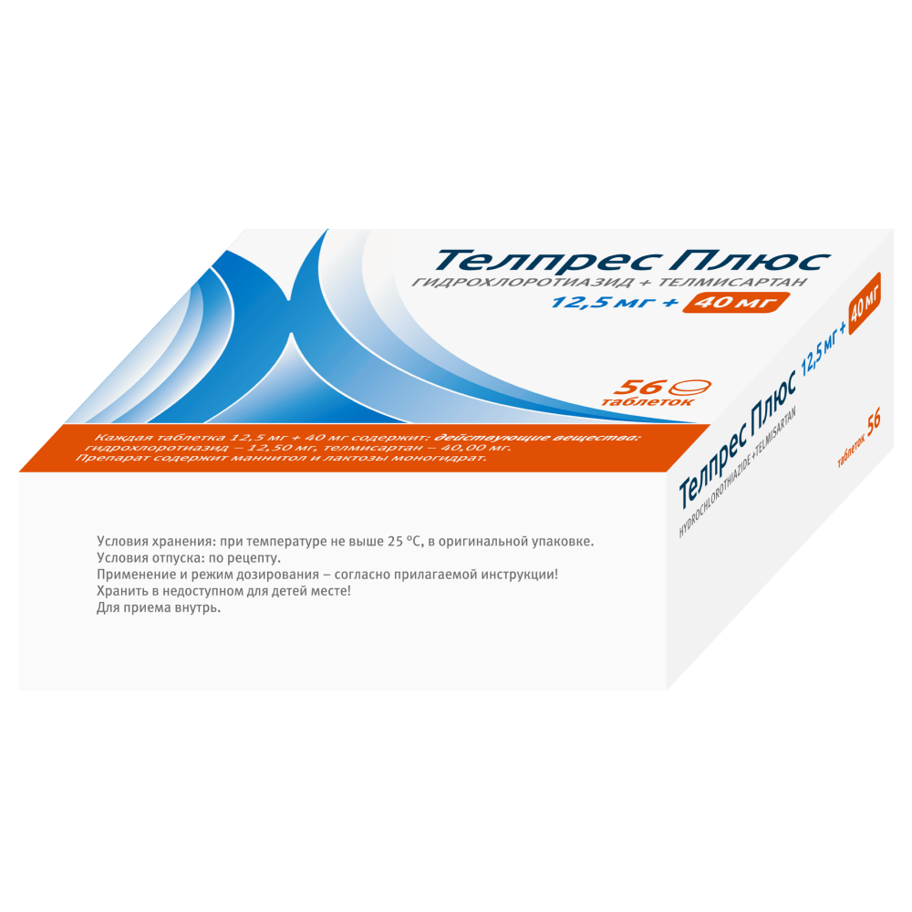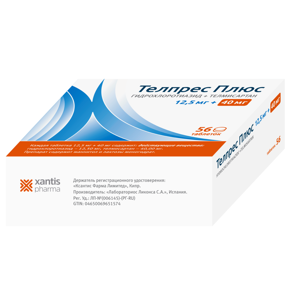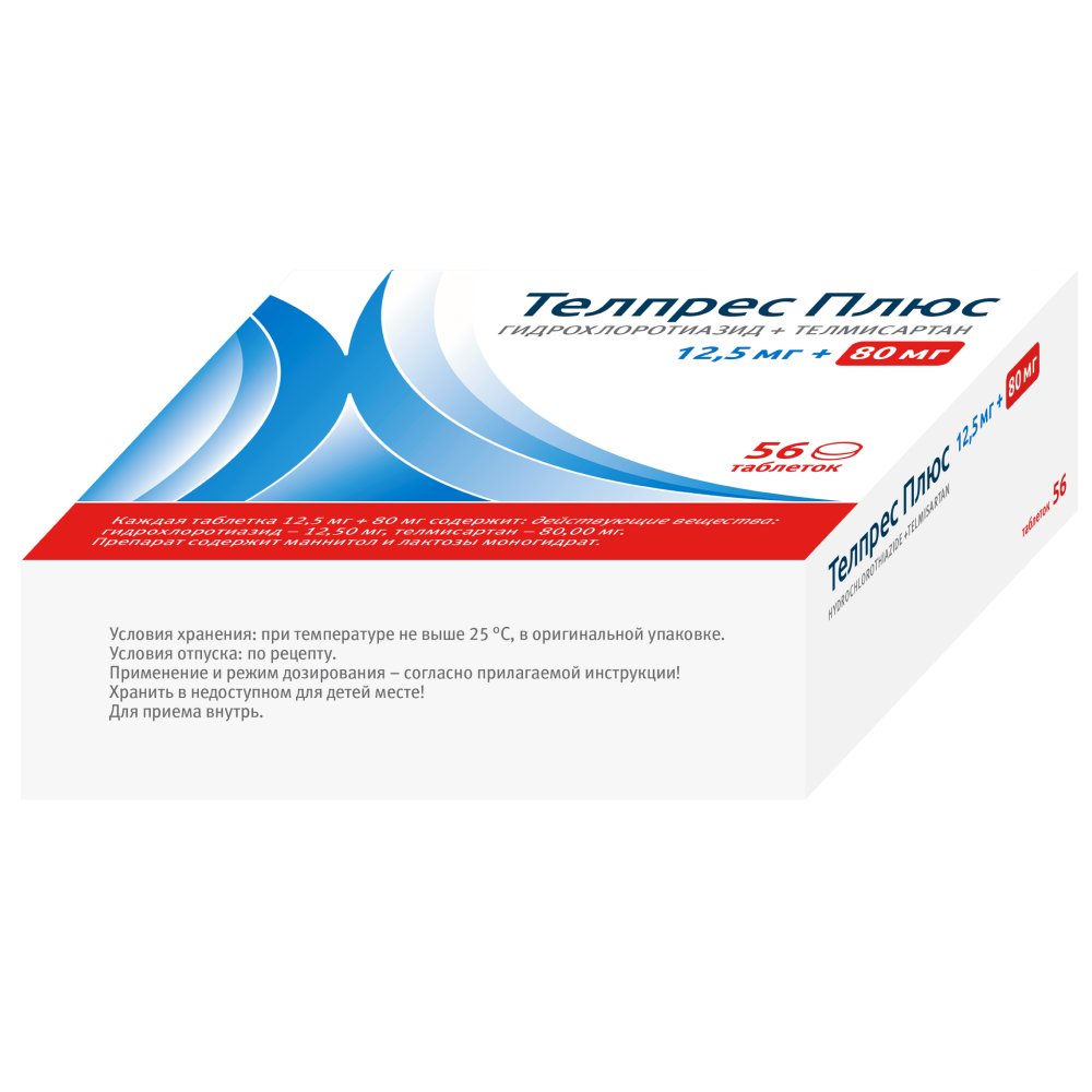 Этот активный компонент также присутствует в комбинированном препарате – таблетках Телпрес Плюс. В инструкции к ним указано второе действующее вещество – гидрохлоротиазид. Этот тиазидный диуретик тоже снижает артериальное давление (АД).